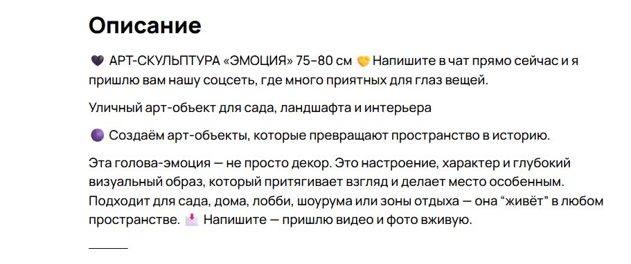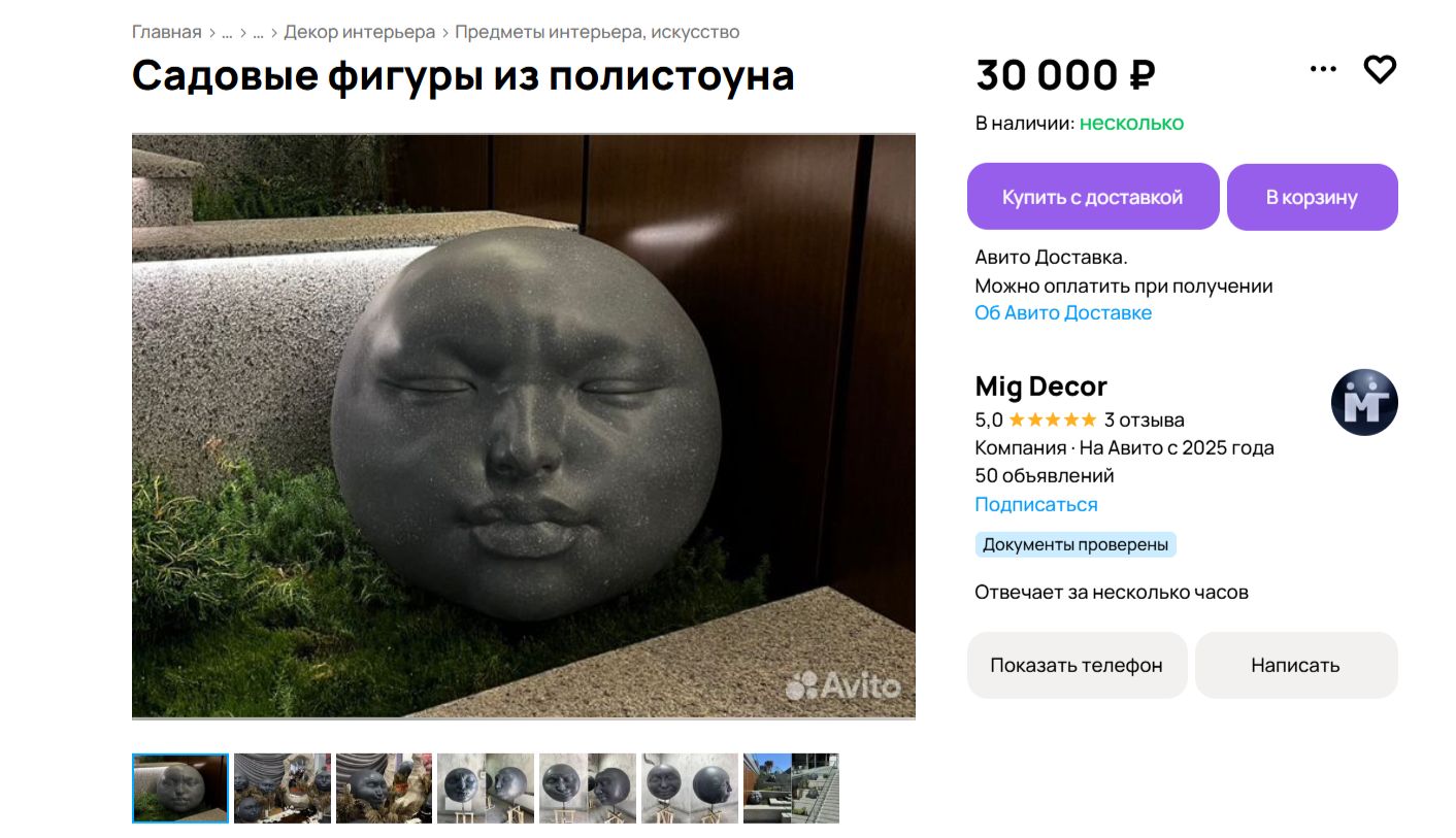«Этa голова-эмоция — не просто дeкop. Это настроение, характер и глубокий визуальный образ, который притягивает взгляд и делает место особенным. Подходит для сада, дома, лобби, шоурума или зоны отдыха — она «живет» в любом пространстве», — написал продавец.