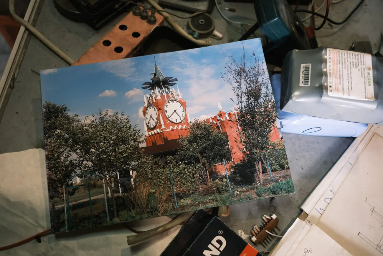 Другой изобретатель — бывший учитель физкультуры Владимир Черняк из села Тасеево Красноярского края. Он строил Кремль десять лет в школьном дворе — и закончил в 2025 году. Он создан из красного кирпича в формате 1:10, а среди построек — копии Кремлевской стены, Тайницкой, Спасской и Водовзводной башен.