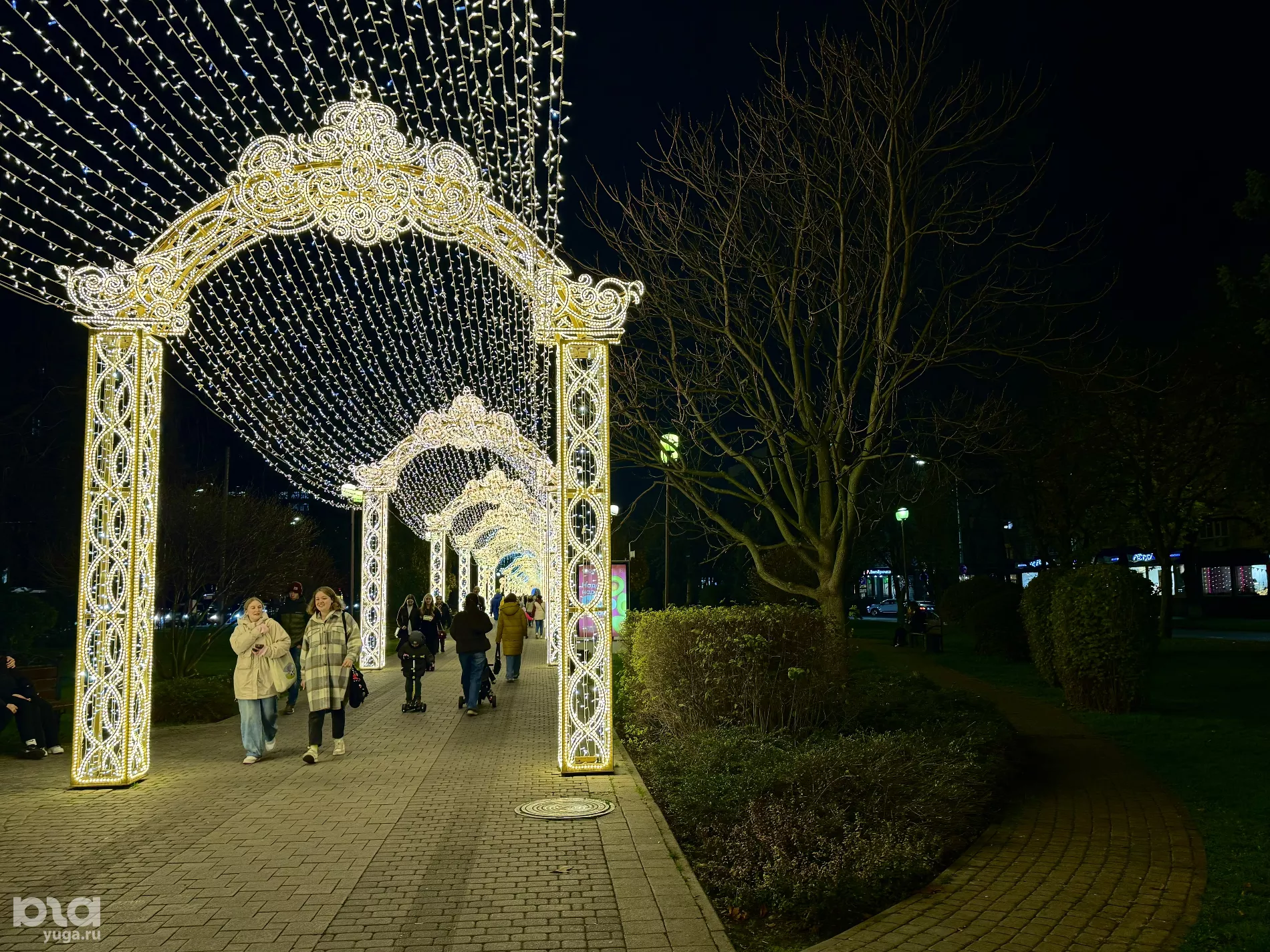 Новогодняя Красная второй год подряд становится точкой притяжения для краснодарцев и туристов. По вечерам возле иллюминации собираются целыми семьями, многие фотографируются, подростки снимают тик-токи. Пока людей не очень много, однако в выходные ожидается первый аншлаг.