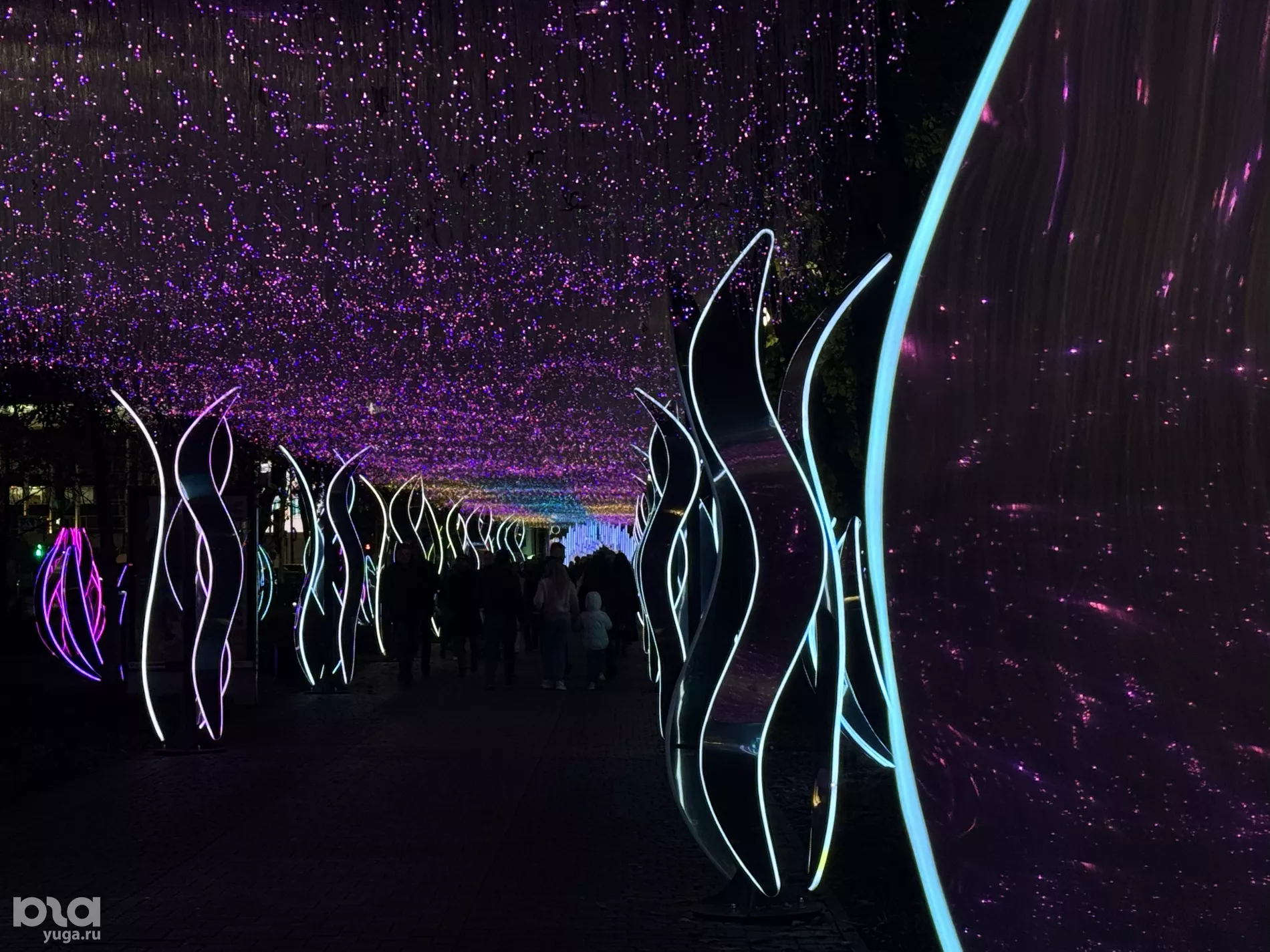 Одна из светящихся разными оттенками арок, расположенная между улицами Кузнечной и Володи Головатого, похожа на таинственный лес из фильма «Аватар».