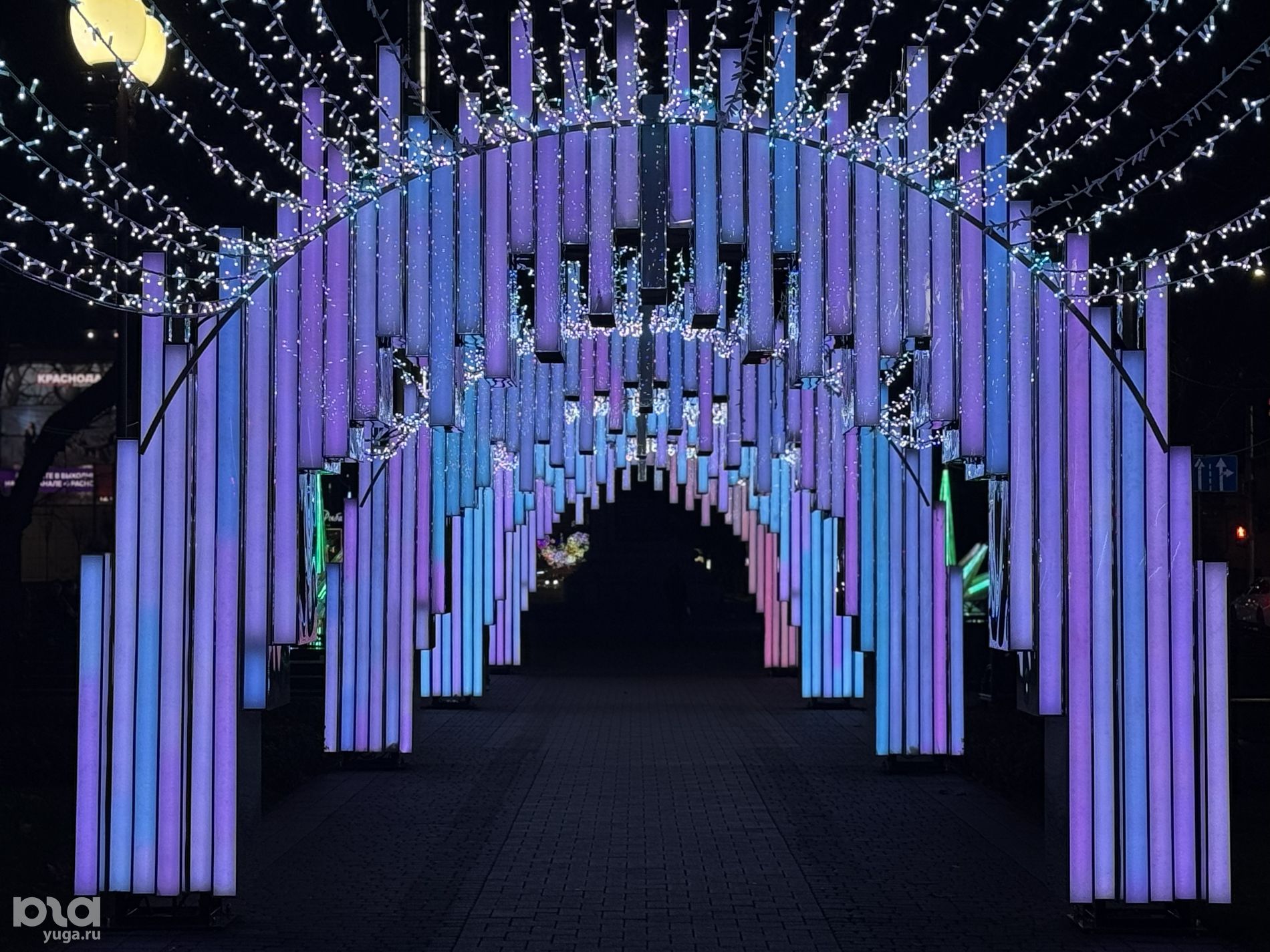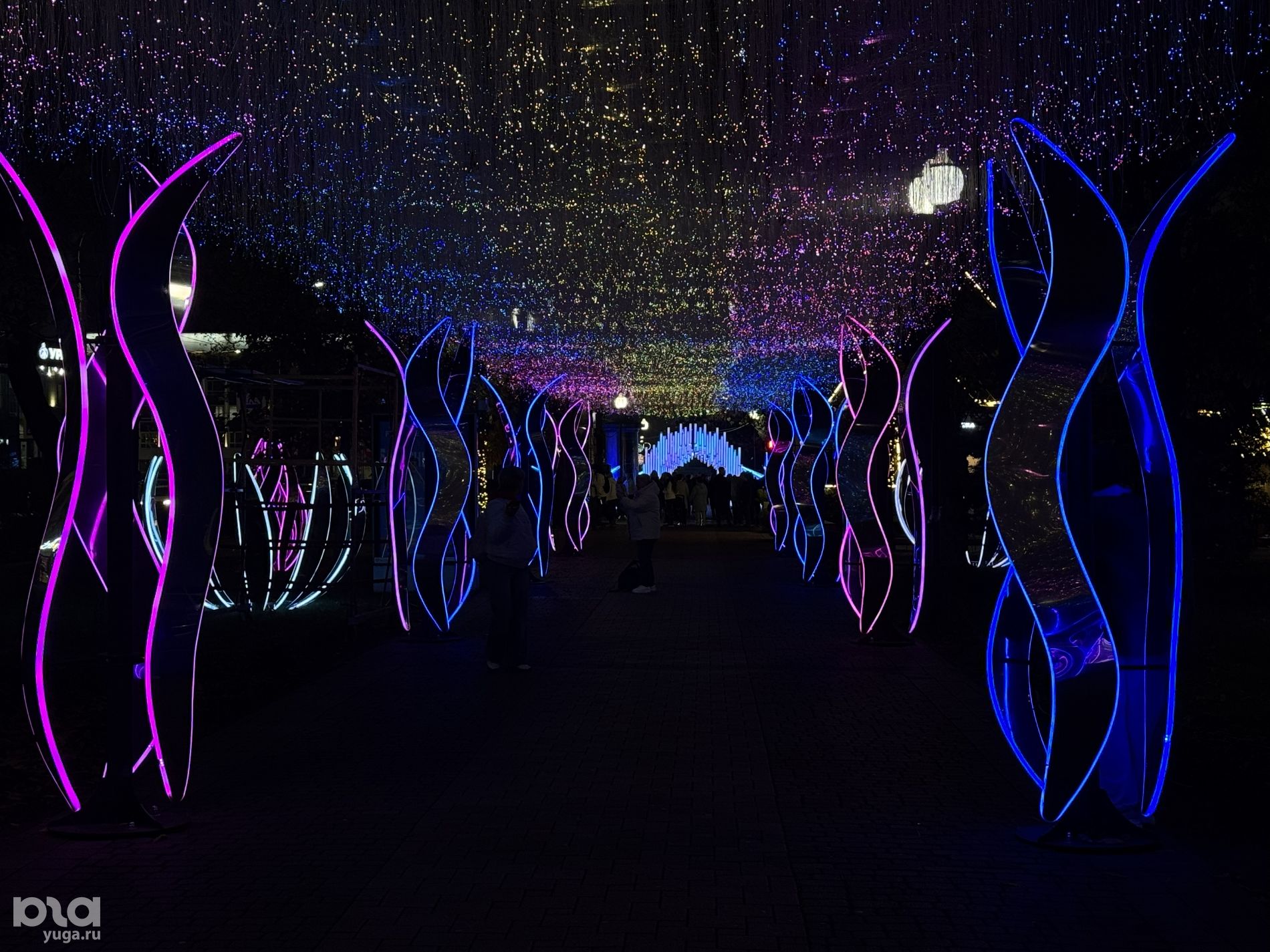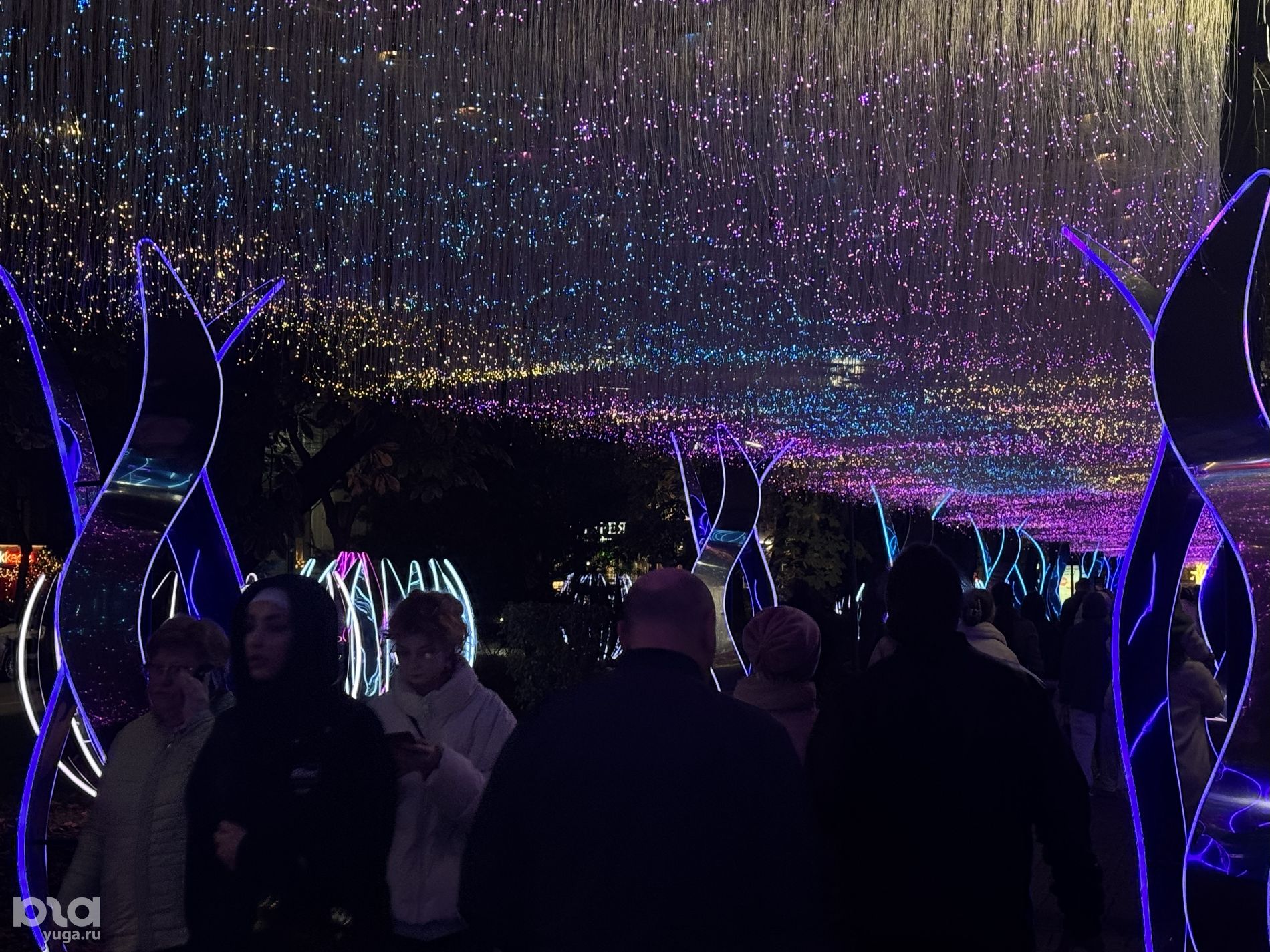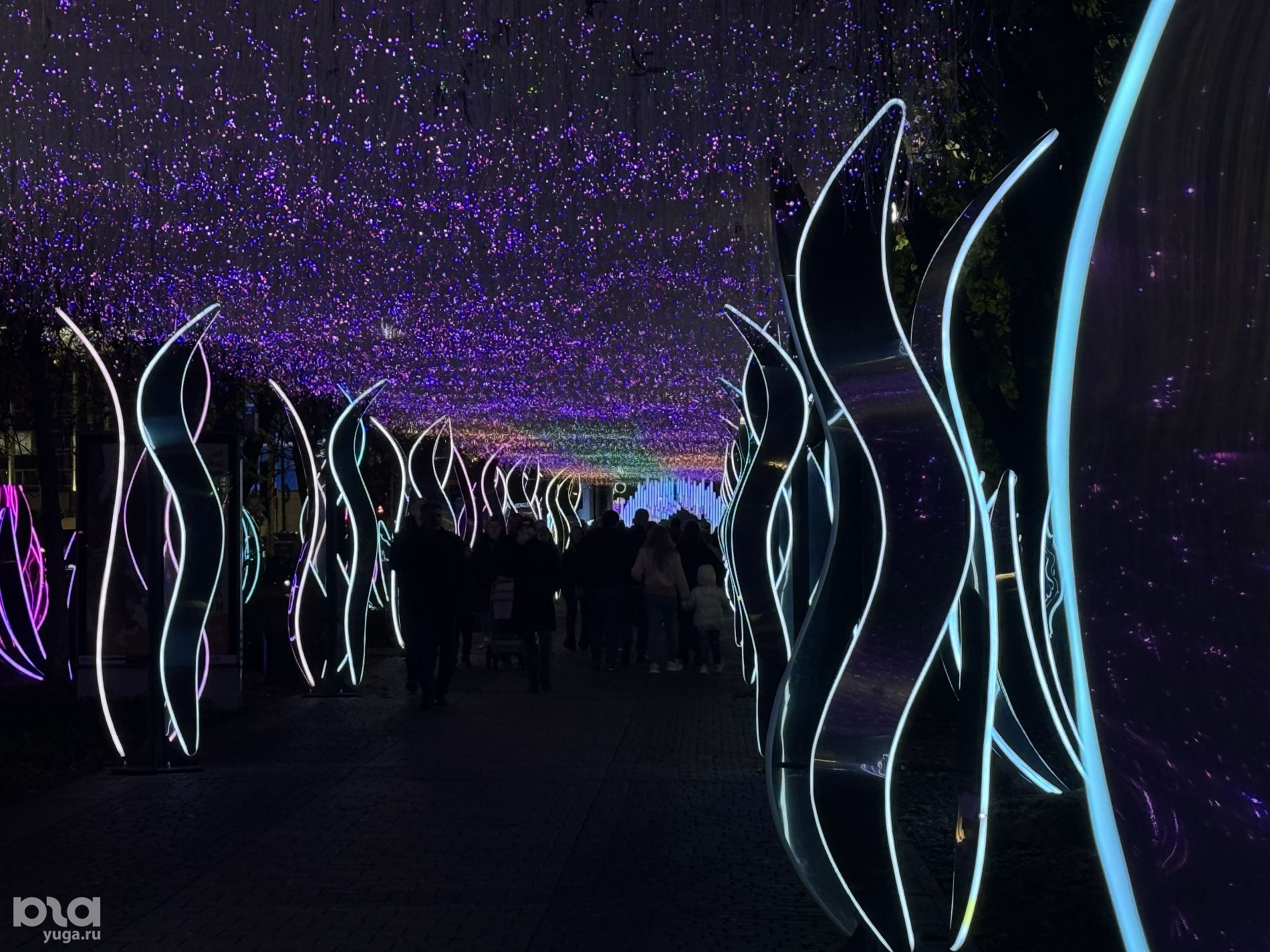 Одна из светящихся разными оттенками арок, расположенная между улицами Кузнечной и Володи Головатого, похожа на таинственный лес из фильма «Аватар».