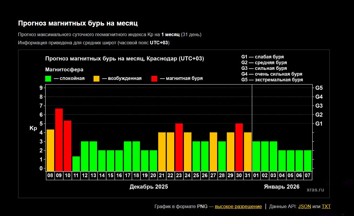 Сильная магнитная буря накроет Краснодарский край 9 и 10 декабря