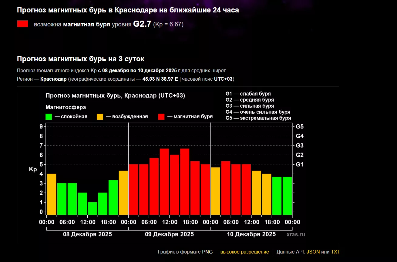 Сильная магнитная буря накроет Краснодарский край 9 и 10 декабря
