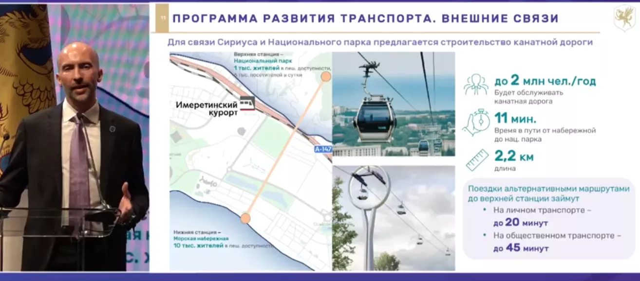Власти Сириуса планируют строительство канатной дороги. Ее протяженность — 2,2 км, а время в пути составит 11 минут
