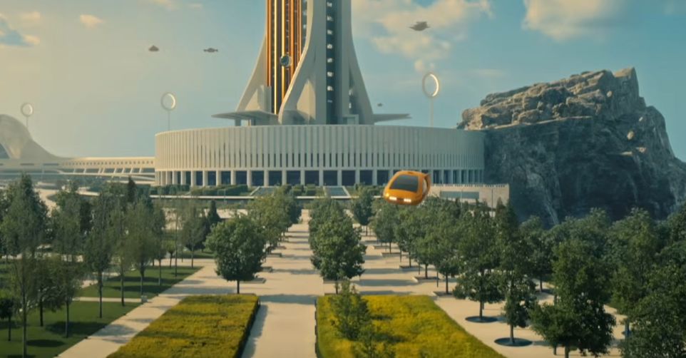 Стадион в ролике изображен в футуристическом виде с расположенном внутри него лифтом, уходящим в небо. Возле «Ozon Арена» расположена большая гора и высокие столбы, на концах которых — круги с подсветкой, а вокруг стадиона движутся летающие машины.