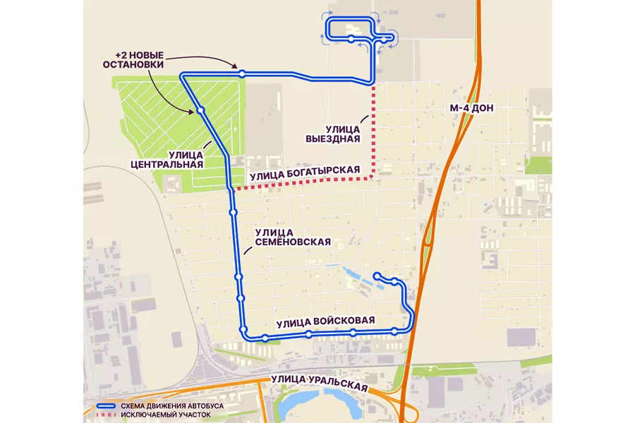 • Маршрут краснодарского автобуса №19, вступающий в силу с 12 января 2026 г. © Скриншот публикации на сайте мэрии Краснодара, krd.ru