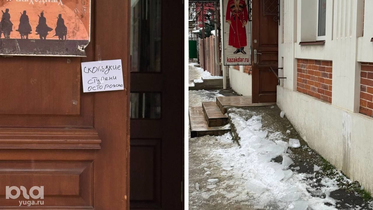 Журналистка Юга.ру прошлась по центральным улицам Краснодара, где с крыш падают снег и сосульки, а горожан об этом предупреждают редко