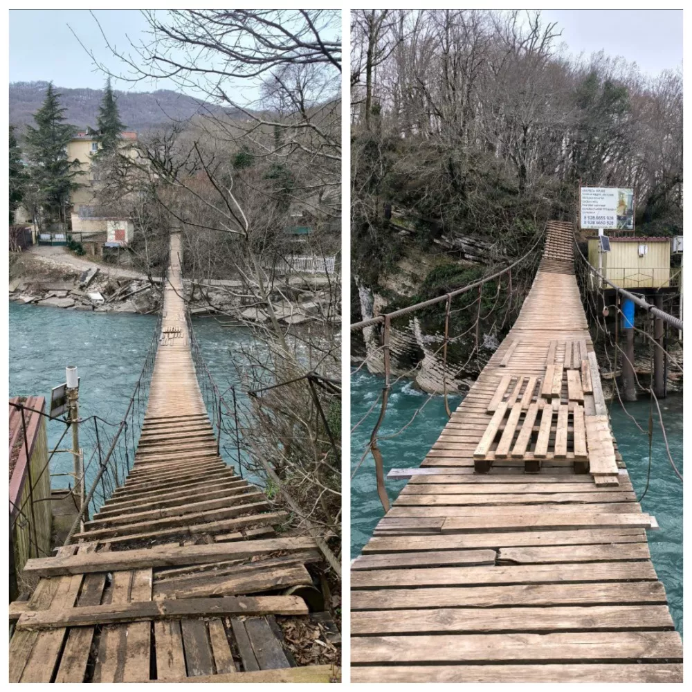 22 января телеграм-канал «Типичный Сочи» сообщил, что детям из села Ахштырь приходится ходить до школьного автобуса по аварийному навесному мосту. В дождь и мороз он становится скользким, а альтернативного маршрута нет.