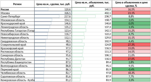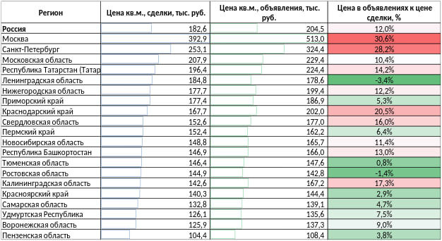 Как отметила Татьяна Чакалова, заместитель управляющего Краснодарским отделением Сбербанка, фактическая цена квадратного метра в сделках составила 167,7 тыс. рублей, а в объявлениях — 202 тыс. рублей. По этому показателю Краснодарский край вошел в число регионов с самой высокой разницей.