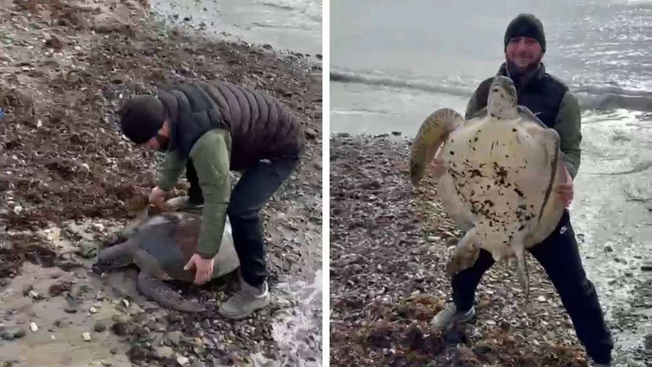 Животное по ошибке приплыло к берегам Краснодарского края из теплых вод. Рептилия может погибнуть из-за низких температур воды и воздуха.