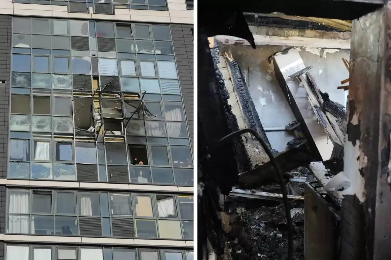 Мэр также опубликовал фотографии поврежденных многоквартирных и частных домов. Судя по кадрам, в современной многоэтажке выбиты окна на балконах, в некоторых домах обгоревшие стены, разрушены хозпостройки.