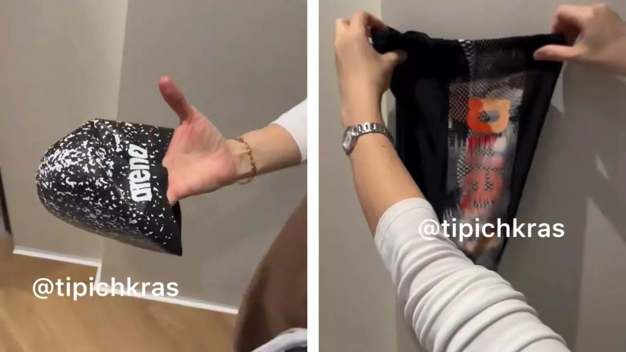 В другом видео родители мальчика показали его плавки и шапочку. Они отметили, что шапочку пловца обязали вывернуть, однако название бренда располагается и на плавках.
