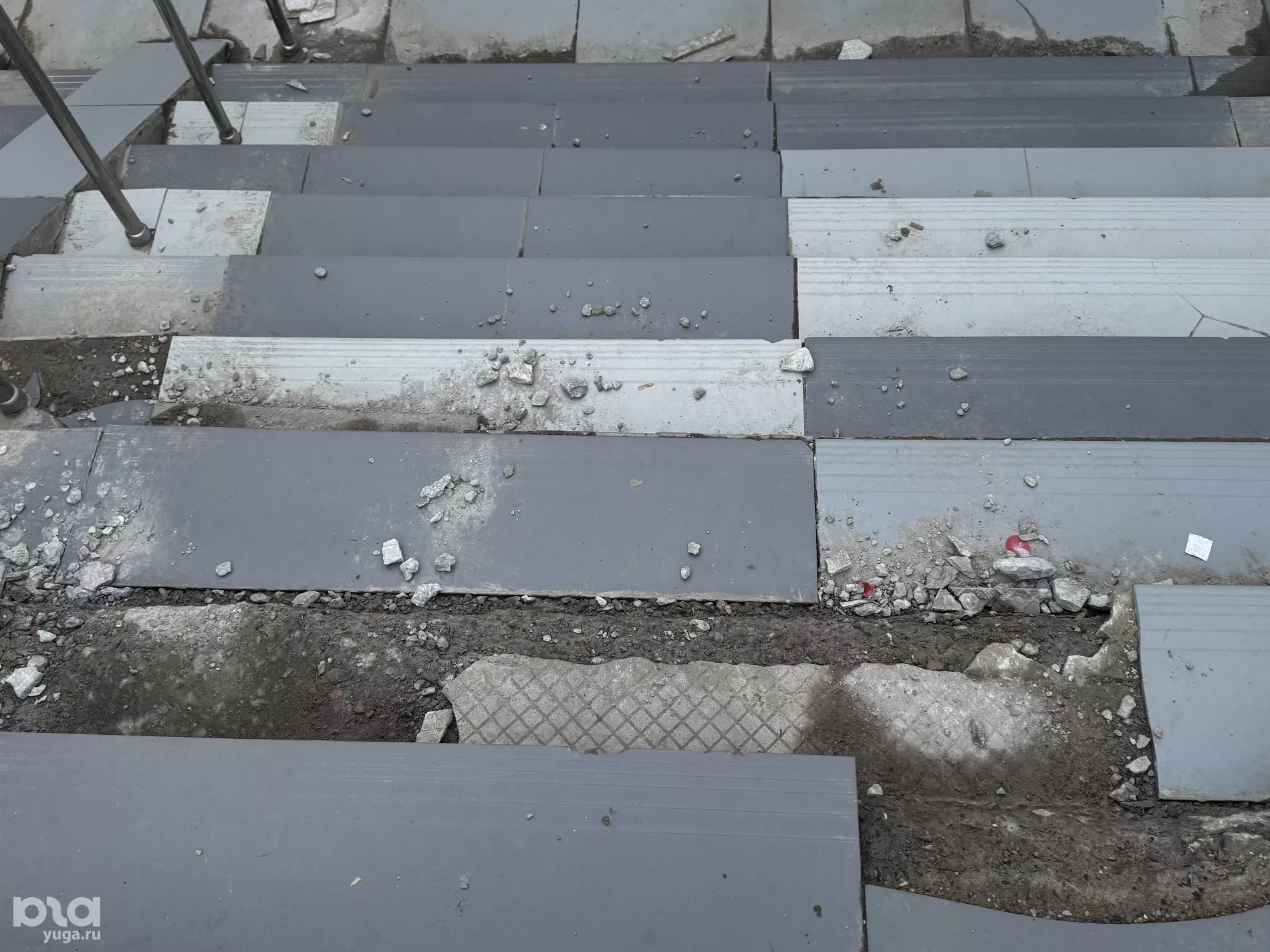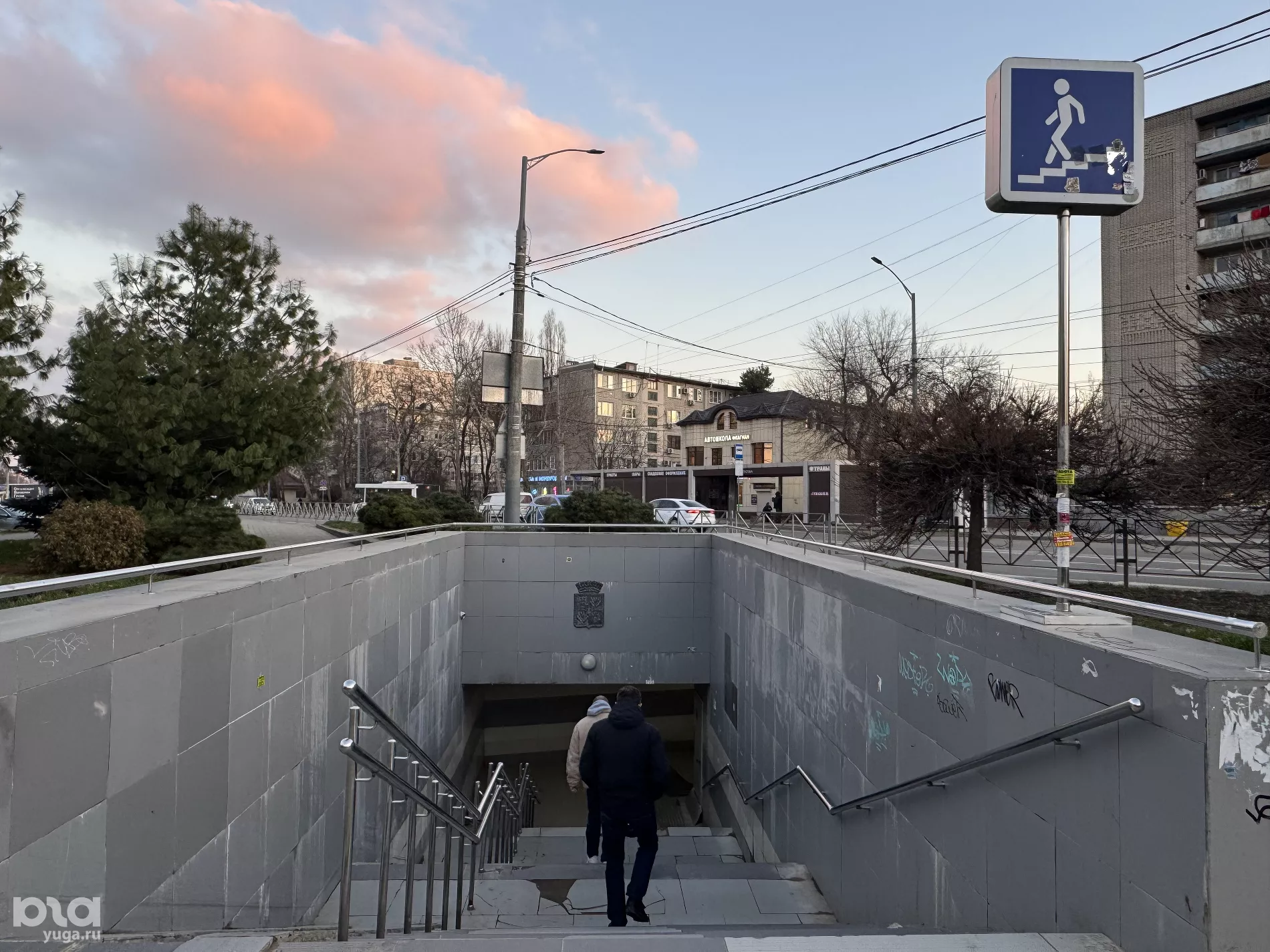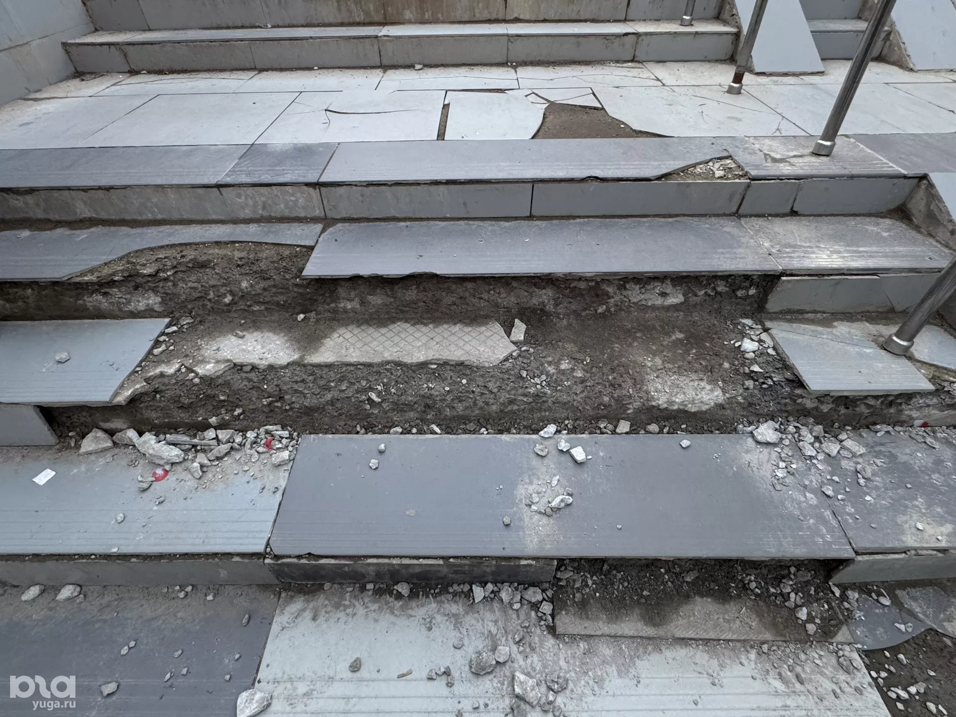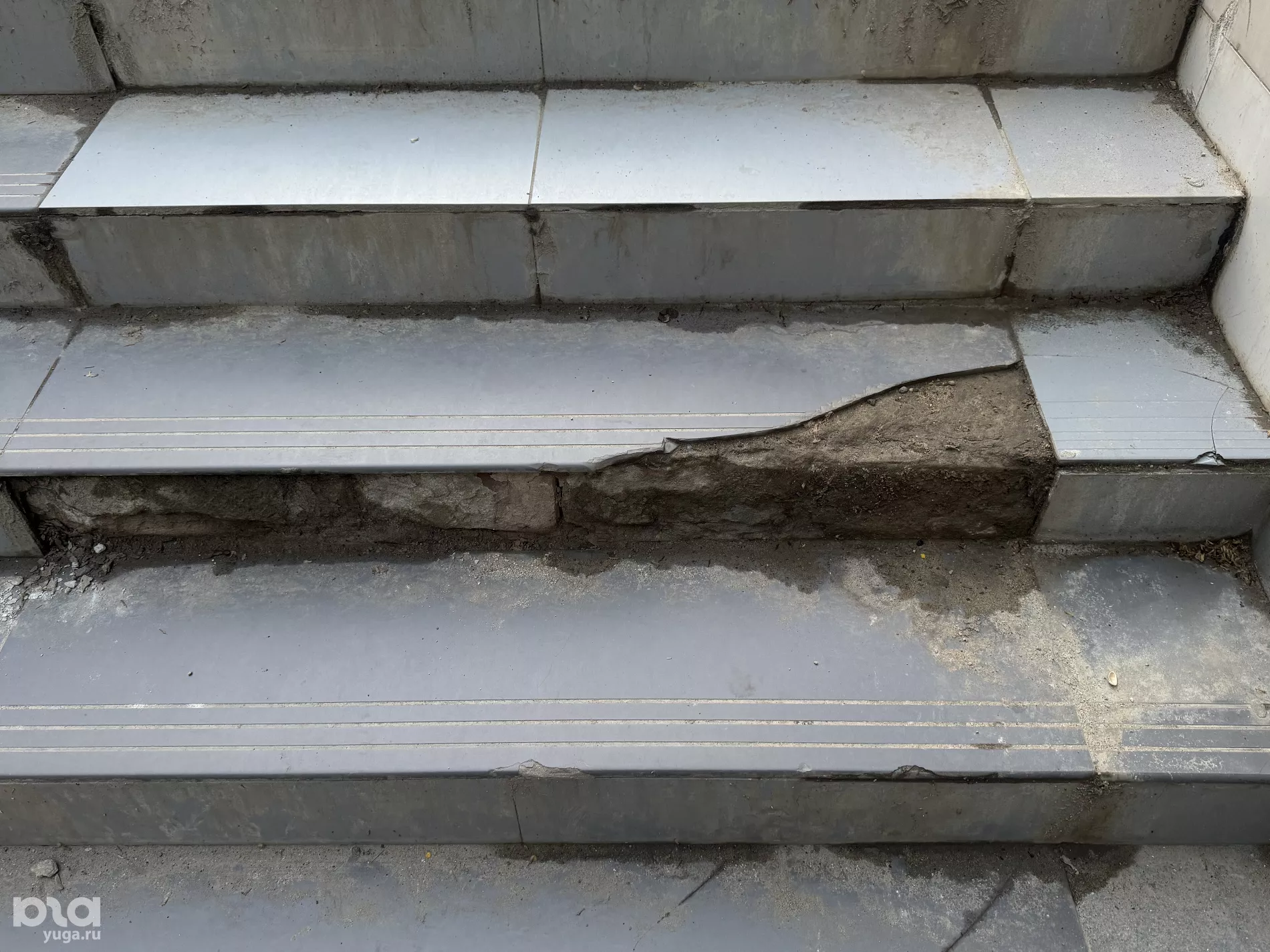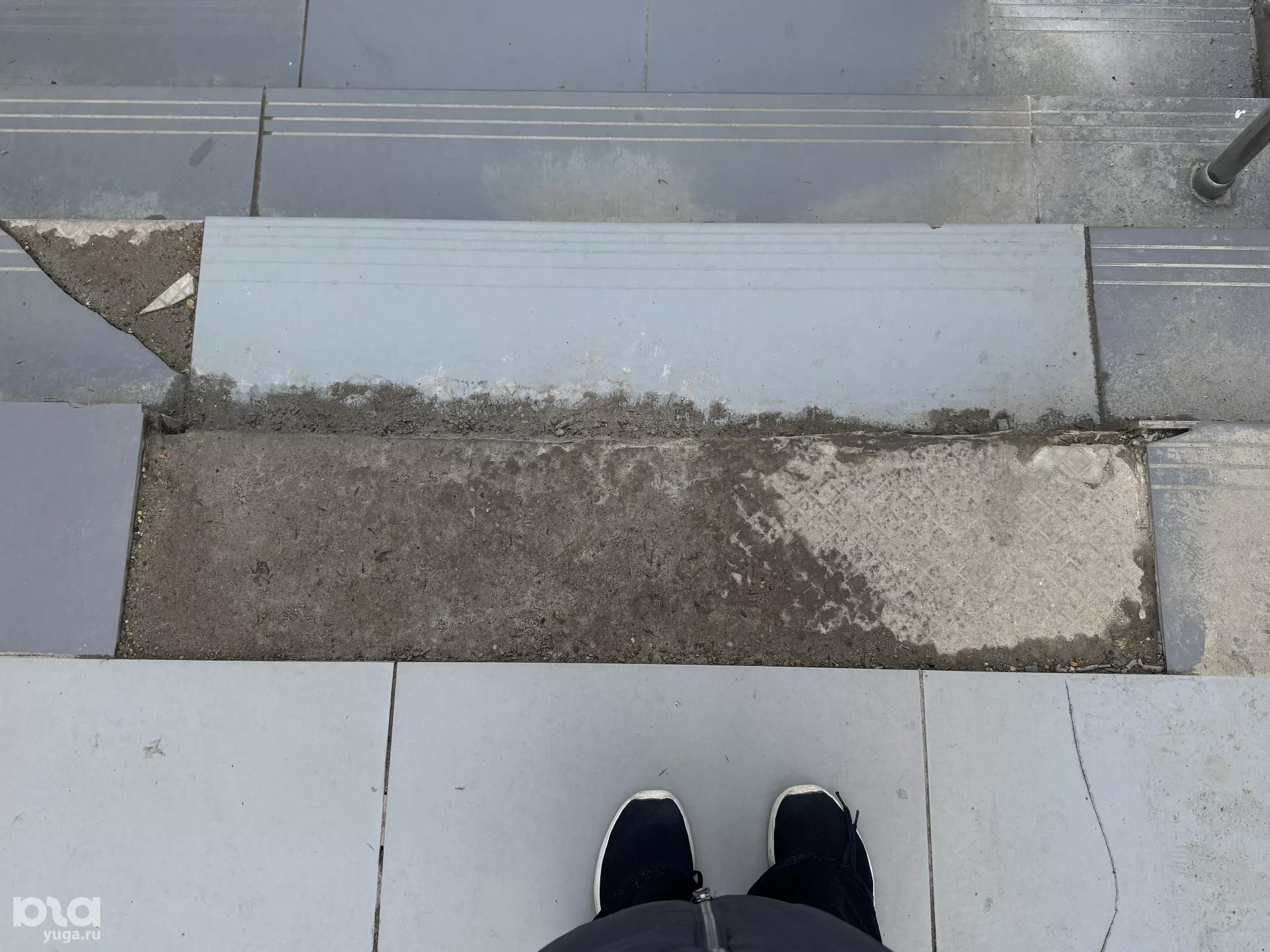 Редактор Юга.ру проверила, как выглядит подземный переход, и убедилась, что он действительно в плохом состоянии — ступени кривые, многие плитки разбиты или вовсе отсутствуют, а стены покрыты разводами.