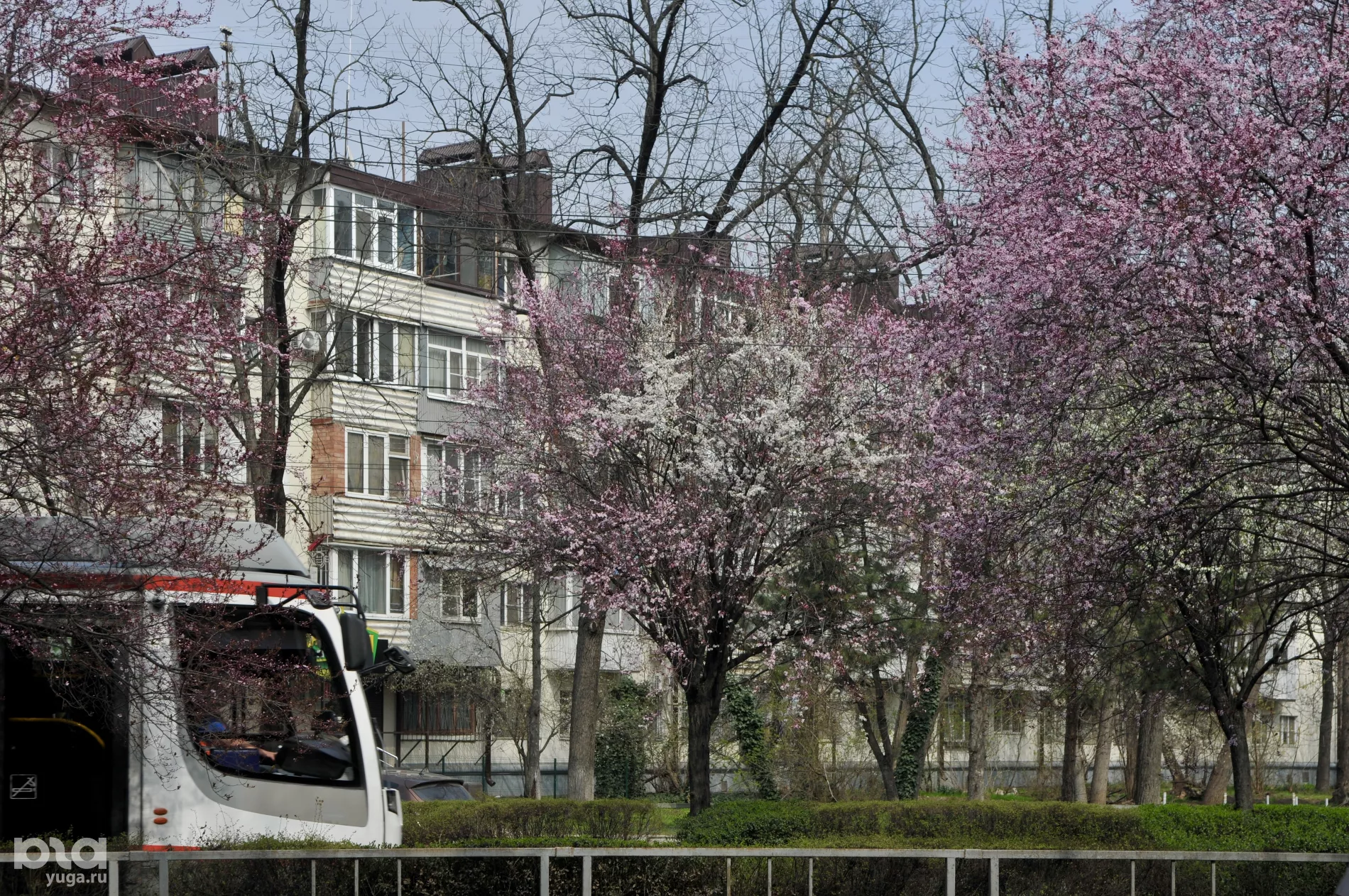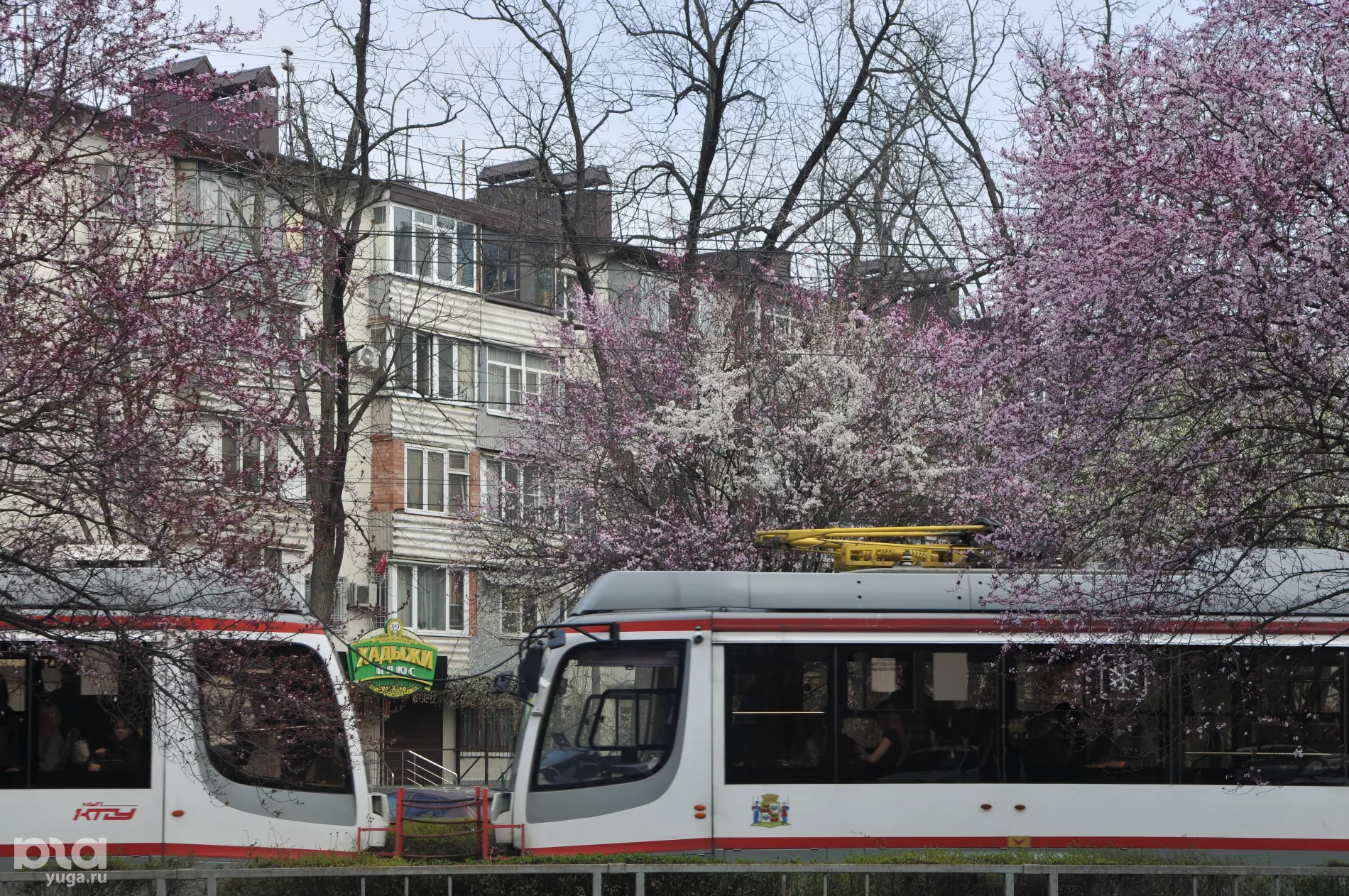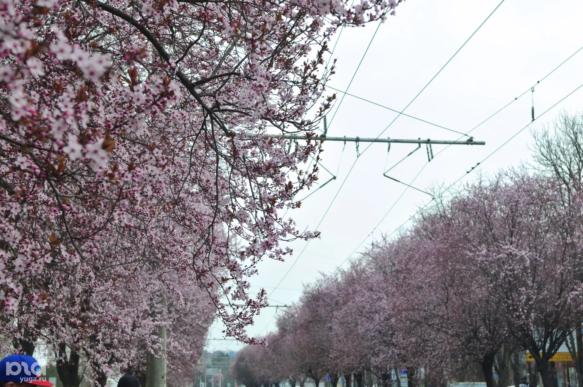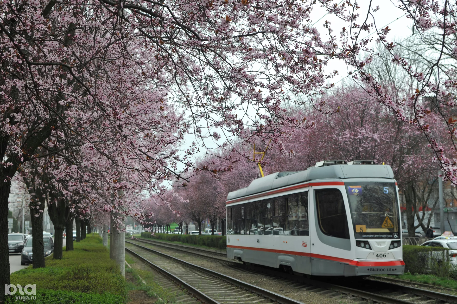 Розовая аллея слив вдоль трамвайных путей стала излюбленным местом для краснодарской версии ханами — японской традиции любования цветущими деревьями. И хотя лепестки только набирают краску, на Ставропольской уже собрались охотники за красивыми кадрами.