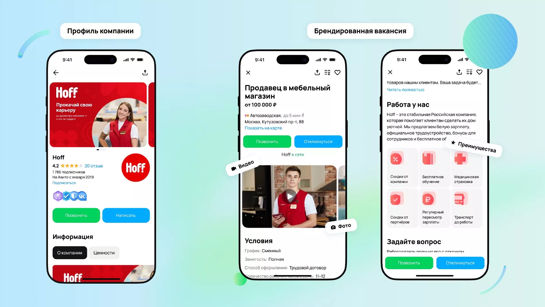 «Брендирование вакансий оказалось удобным и быстрым в запуске инструментом — возможность составить четкое ТЗ и понятный процесс позволили нам быстро собрать креативы и оформить вакансии в едином стиле. После запуска мы заметили рост эффективности: конверсия из просмотра в отклик увеличилась на 1,58–2,57% в зависимости от позиции», — отметил руководитель отдела подбора персонала Hoff Филипп Старков.