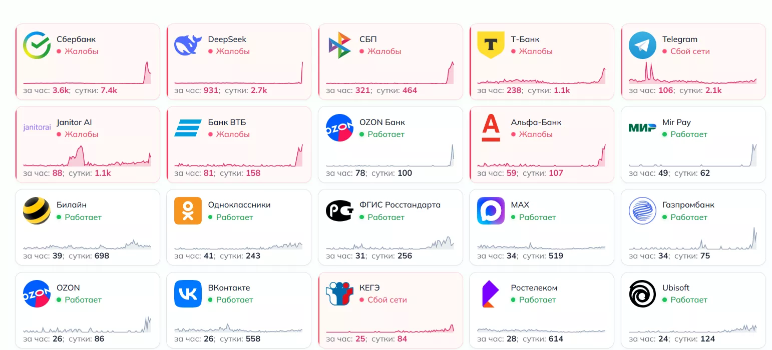 Также сбоят приложения ВТБ, Т-Банка, Альфа-Банка, СБП, Газпромбанка, Совкомбанка. Больше всего жалоб приходит из Москвы, Санкт-Петербурга, Московской, Новосибирской и Свердловской областей.