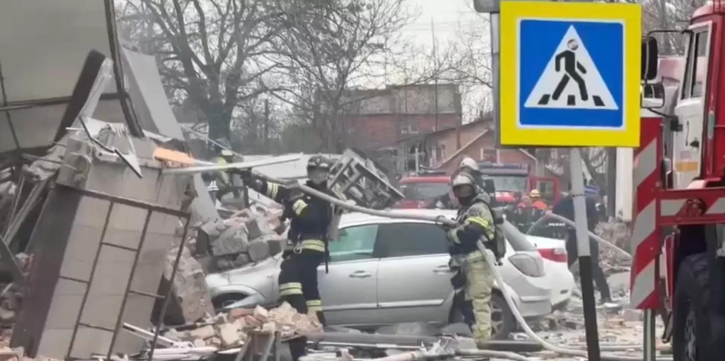 Здание частично разрушено. Площадь обрушения — 800 кв. метров. МЧС продолжает поисково-спасательную операцию и тушение пожара — на месте работают 63 специалиста и более 50 единиц техники.
