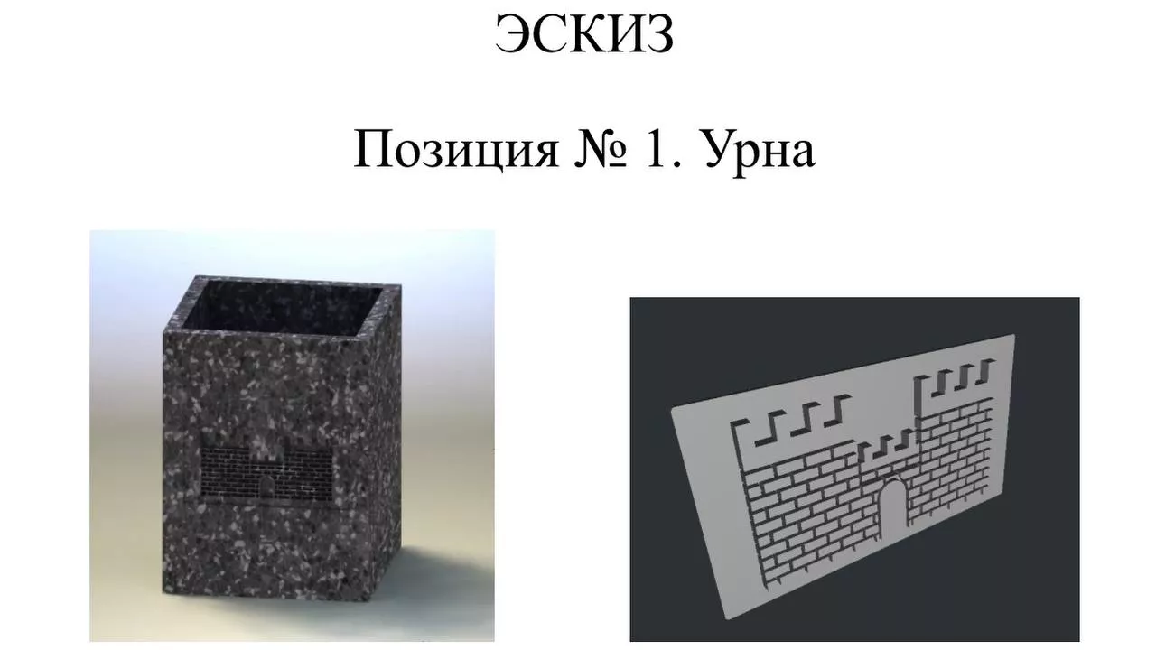 В документе указано, что урны должны быть выполнены из бетона с добавлением мраморной крошки и покрыты лаком. На конструкцию необходимо нанести изображение Екатеринодарской крепости.