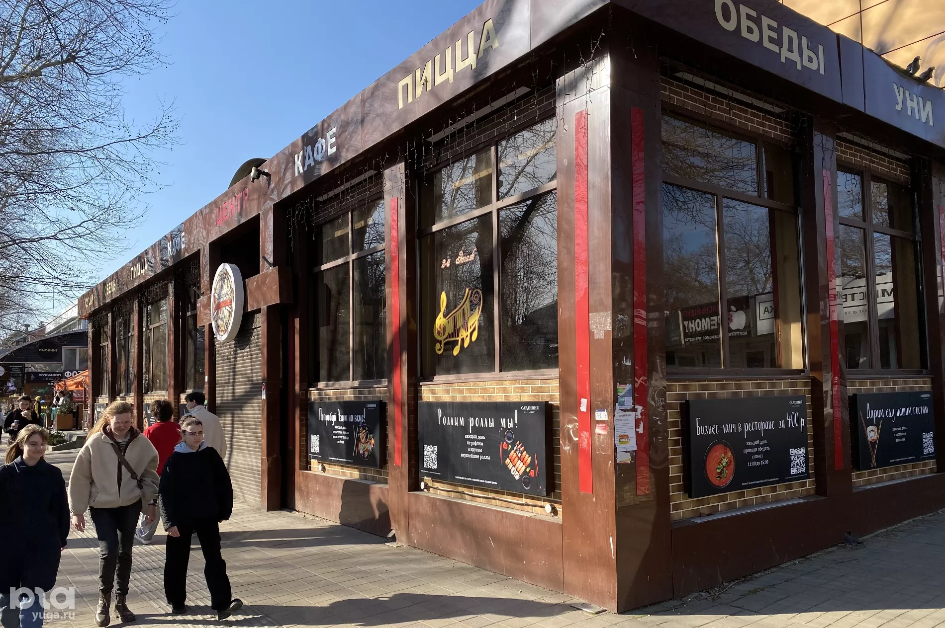 • После закрытия «Уни пиццы» на Ставропольской в ее здании некоторое время работала пиццерия «Сардиния», хоть и с прежним названием «Уни» на фасаде. Фото 13 марта 2026 © Фото Александра Гончаренко, Юга.ру