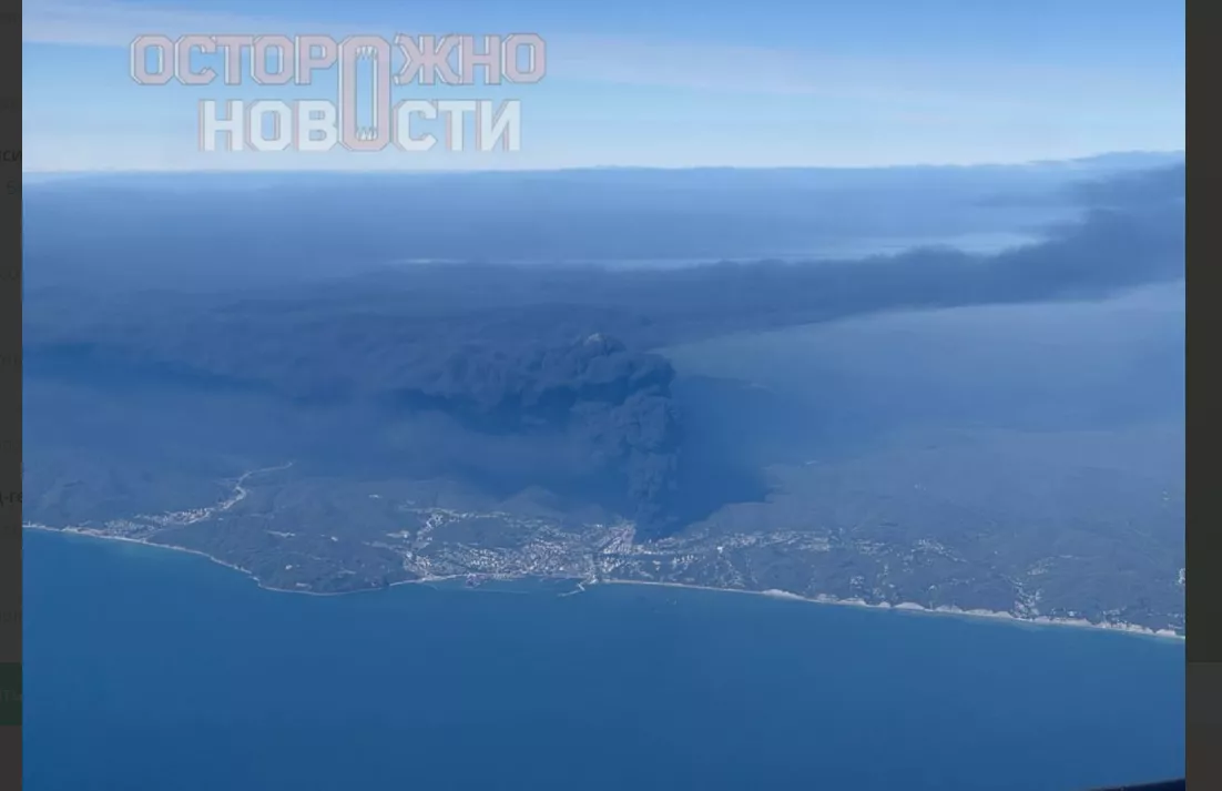 29 апреля телеграм-канал «Осторожно, новости» опубликовал фото, сделанные на борту самолета. На кадрах видно глубы черного дыма, которые исходят от горящего в Туапсе нефтеперерабатывающего завода.