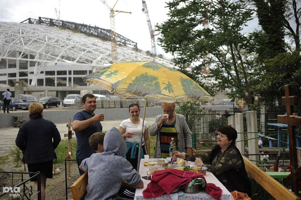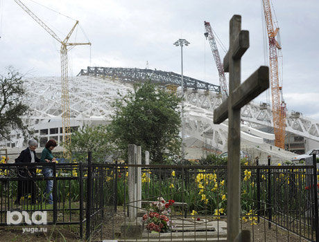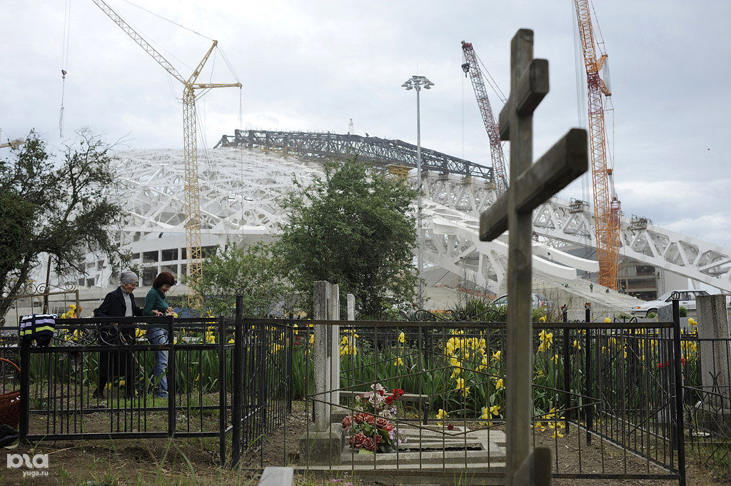 Кладбище, на котором хоронили староверов и местных жителей, находится прямо в центре Олимпийского парка, и все стадионы расположены вокруг него. Чтобы попасть на кладбище, необходимо сделать специальный пропуск, так как оно попадает на охраняемую территорию. Правда, для местных жителей эта процедура на один день максимально упрощена.