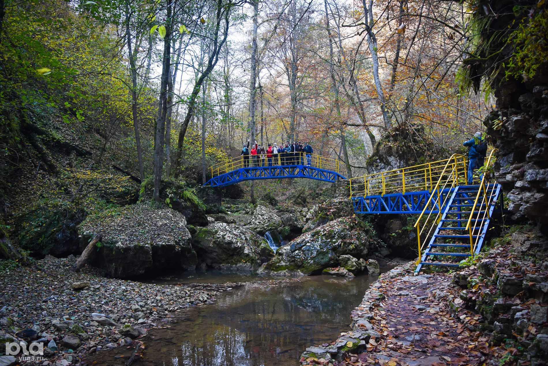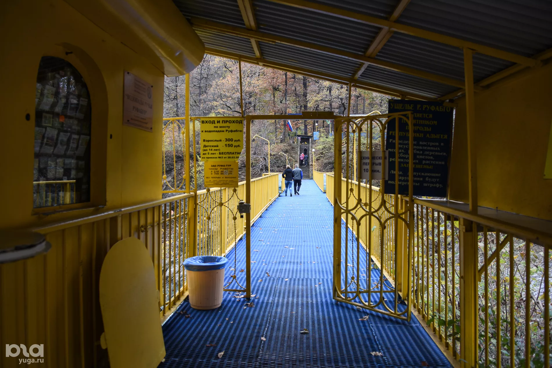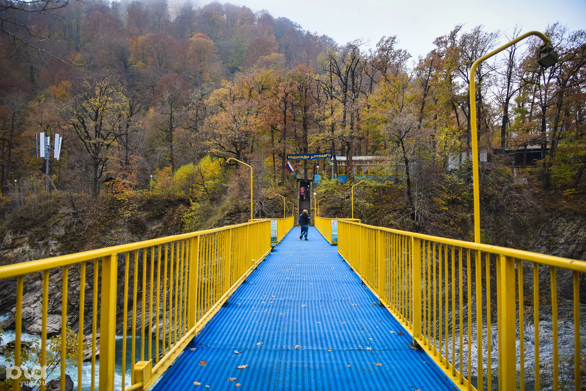 Ручей Руфабго впадает в реку Белую. Вдоль него оборудован туристический маршрут, который позволит даже самым неподготовленным туристам полюбоваться на водопады. Правда, оборудованная для пешей прогулки зона простирается лишь до 4-го водопада, так что туристы с комфортом смогут дойти лишь до 4-х водопадов: "Шум", "Каскадный", "Сердце Руфабго" и "Девичья коса". Всего же их больше дюжины. и, несмотря на отсутствие заграждений и мостков, дойти до них несложно.