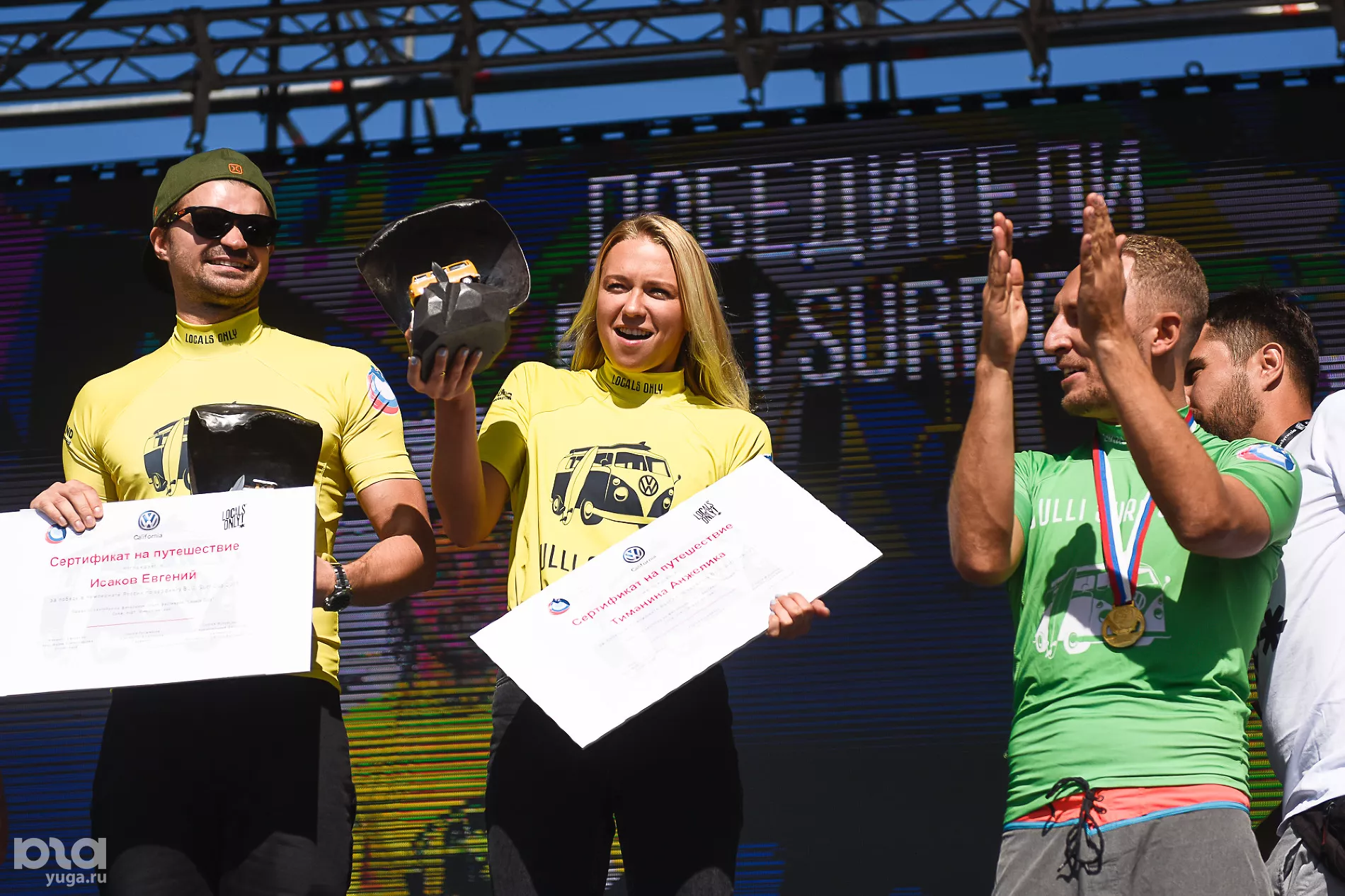 Накануне в Сочи завершился третий этап соревнований по серфингу BulliSurfCup — первого официального чемпионата России по этому виду спорта. За звание чемпионов боролись более 50 спортсменов, причем как профессионалов, так и любителей. В первый день фестиваля на главной сцене прошло награждение победителей.