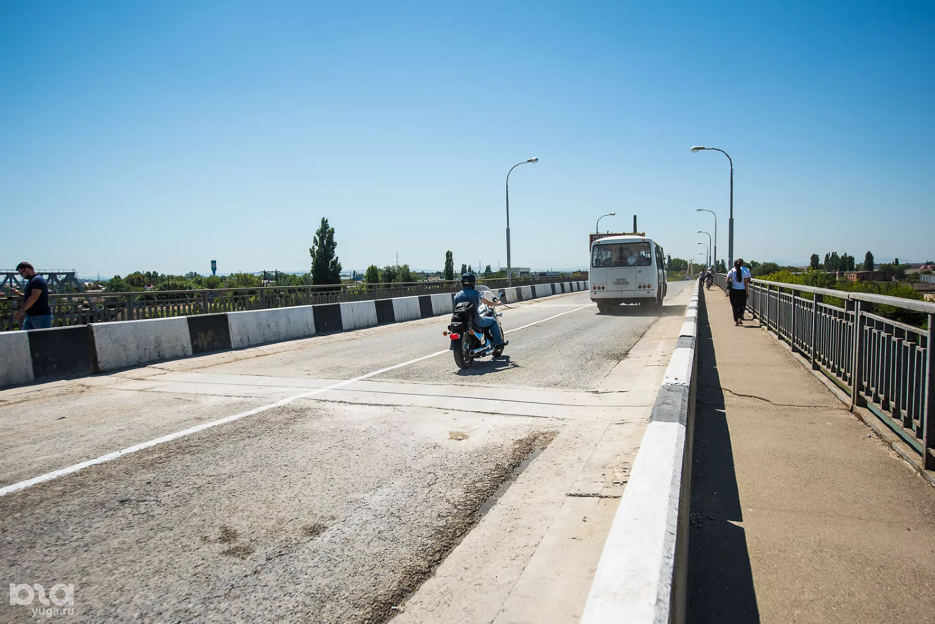 Как сообщали Юга.ру, 6 августа Яблоновский мост закрыли для движения автомобилей. Работы планировалось завершить не позже 20 августа, за этот период рабочим предстояло заменить все шесть температурных швов.