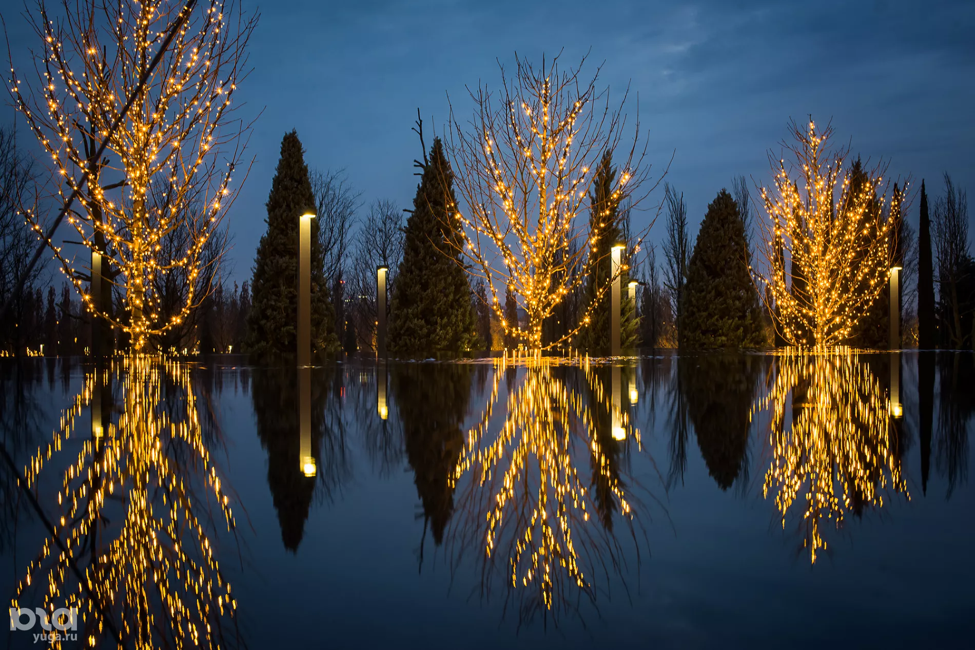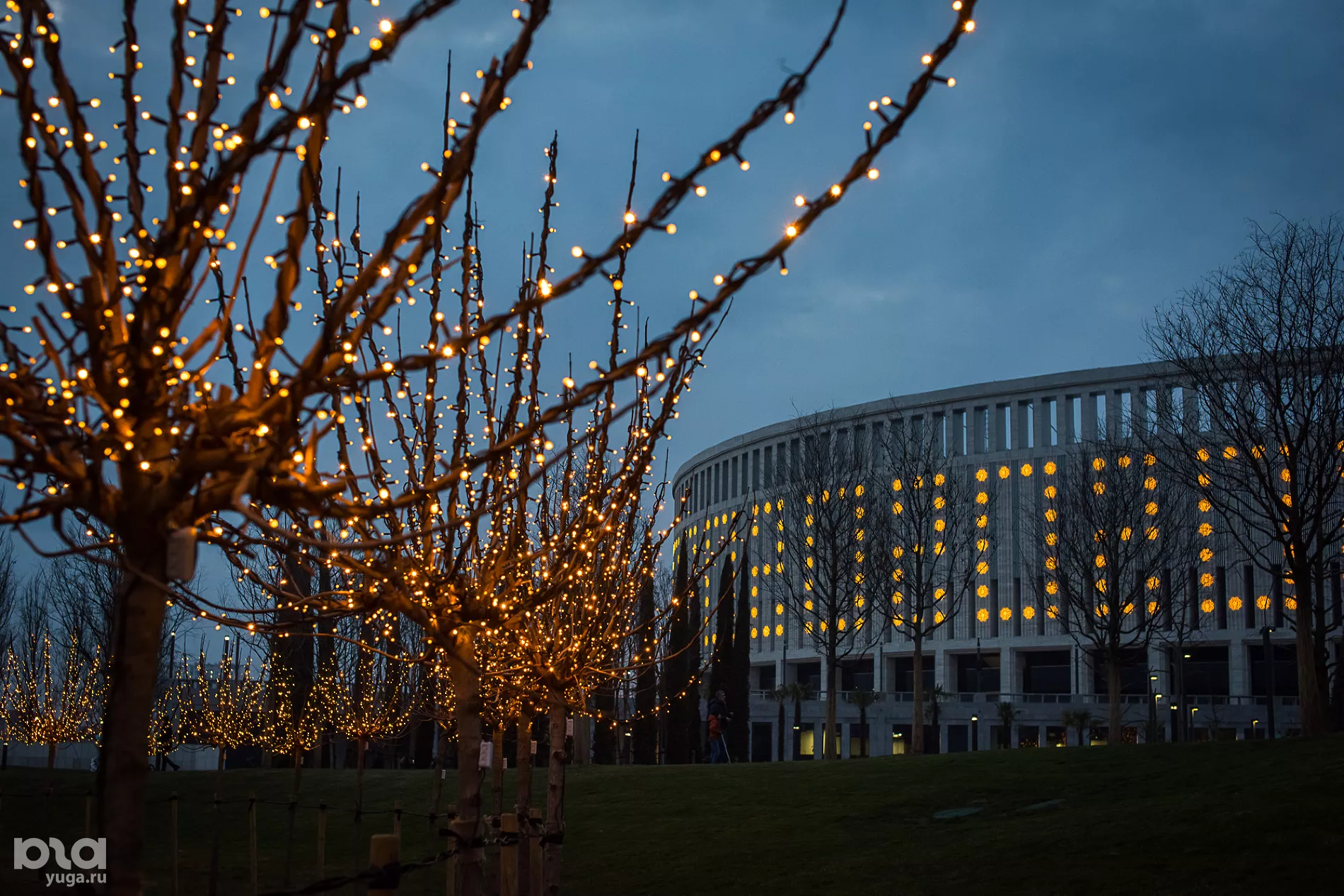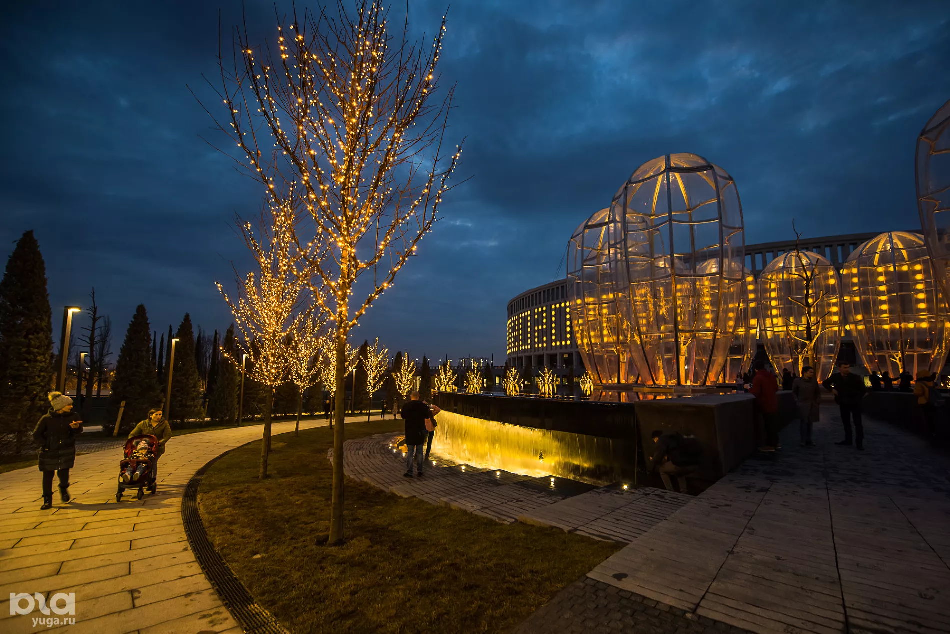 В канун Нового, 2020 года парк и стадион украсили гирляндами. Посмотреть на ночной парк можно в ночном фоторепортаже Югов. Новую очередь парка также украсили по-новогоднему.