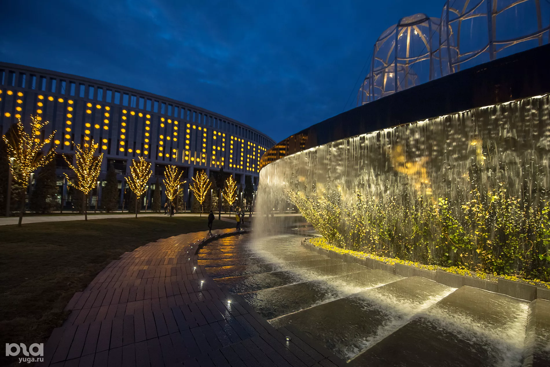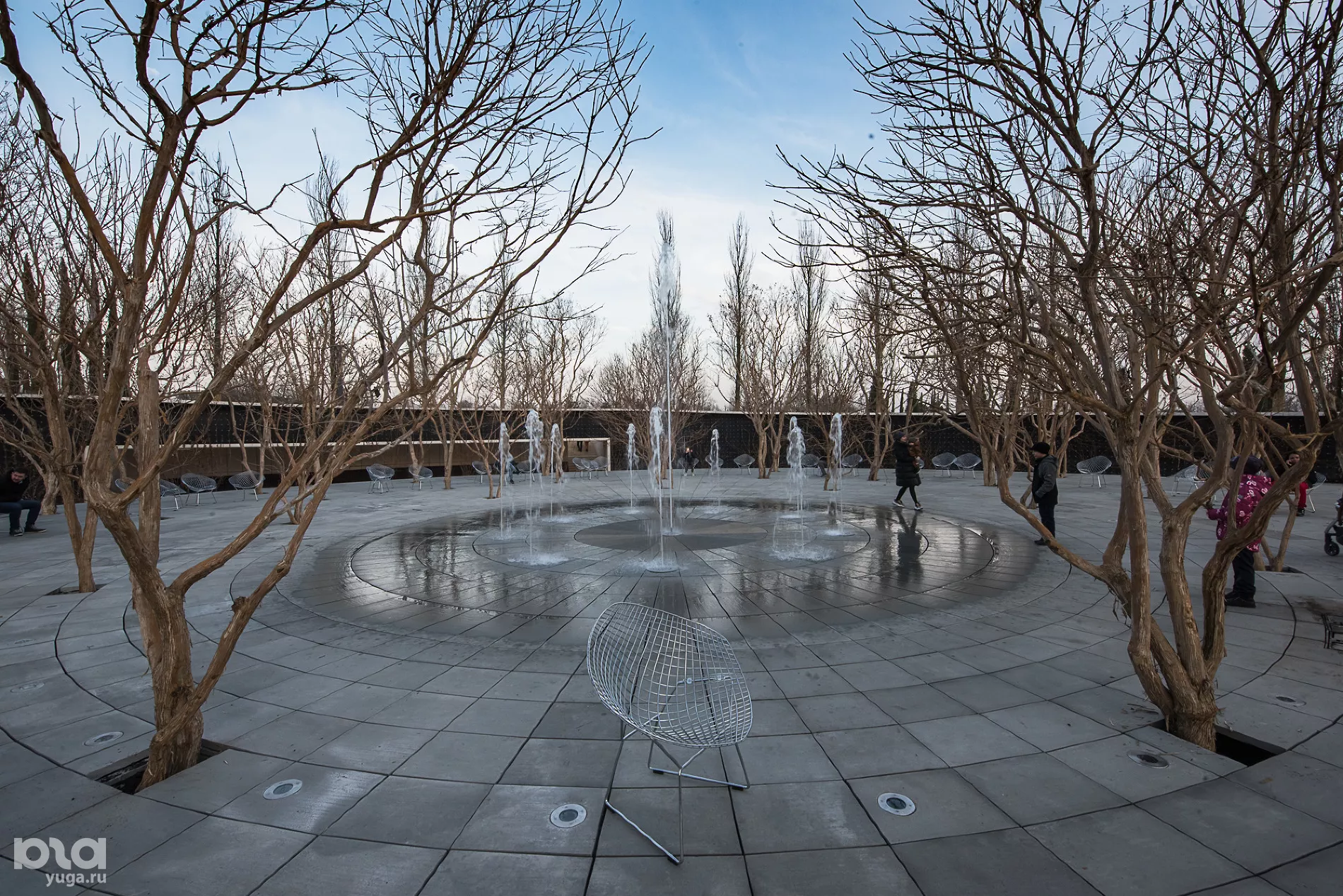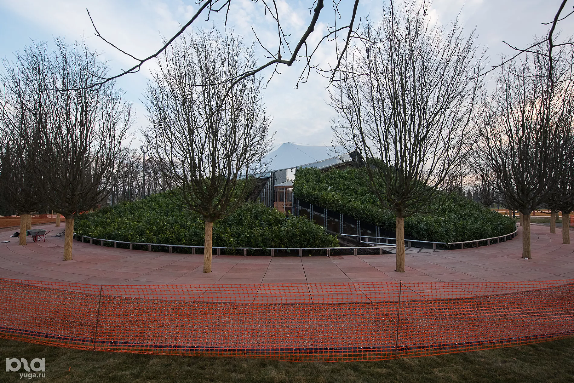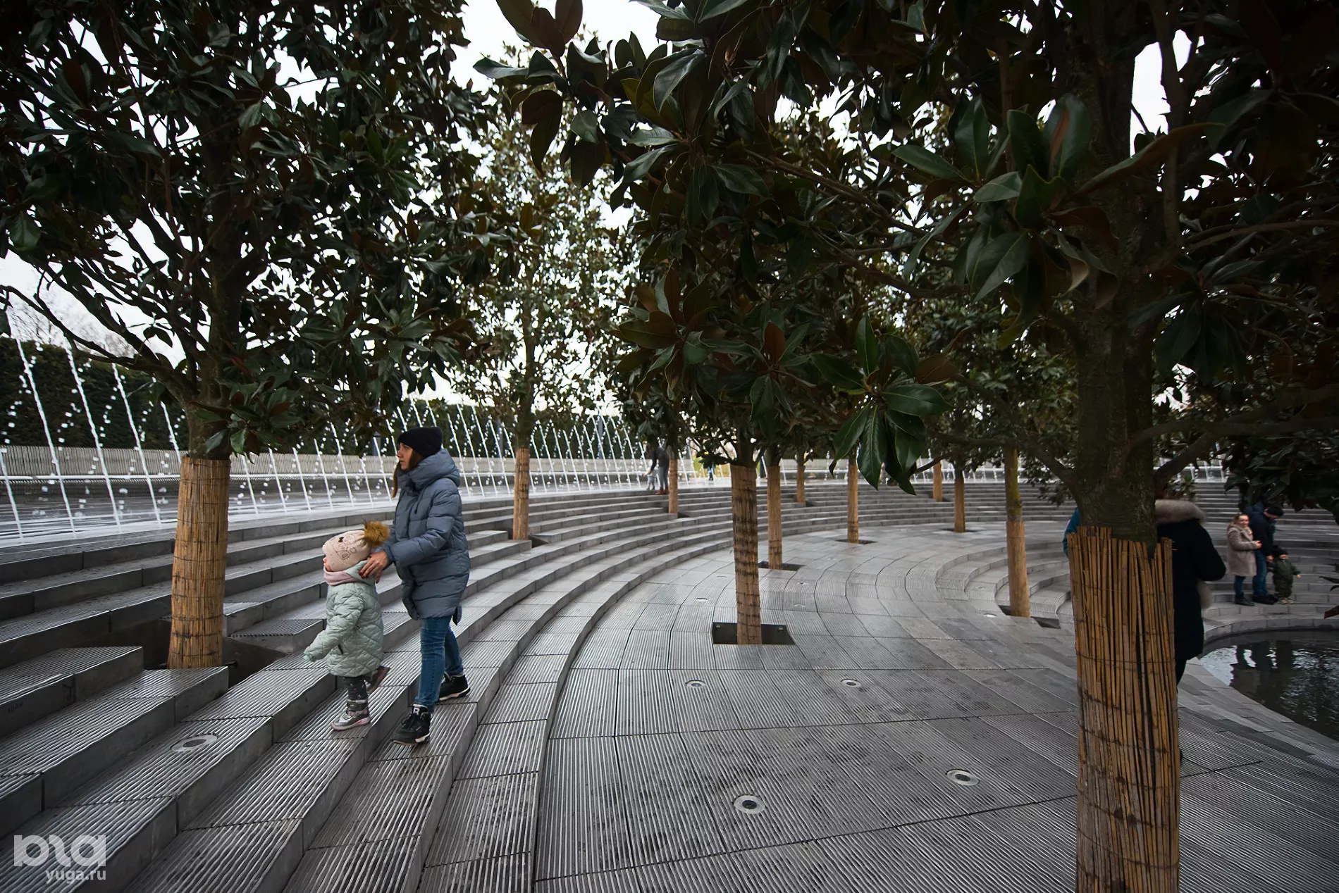 На новой территории высадили пальмы и кипарисы (сейчас часть деревьев закрыта украшенными куполами для обогрева), построили несколько водных объектов: зону с водоемом, в котором плавают декоративные рыбы, несколько фонтанов, под которыми можно гулять, и плоскостной фонтан. В скором времени откроют еще один объект — зеркальный лабиринт. Сейчас он еще обнесен строительной сеткой, а закончить его, по словам строителей, планируется в течение десяти дней.
