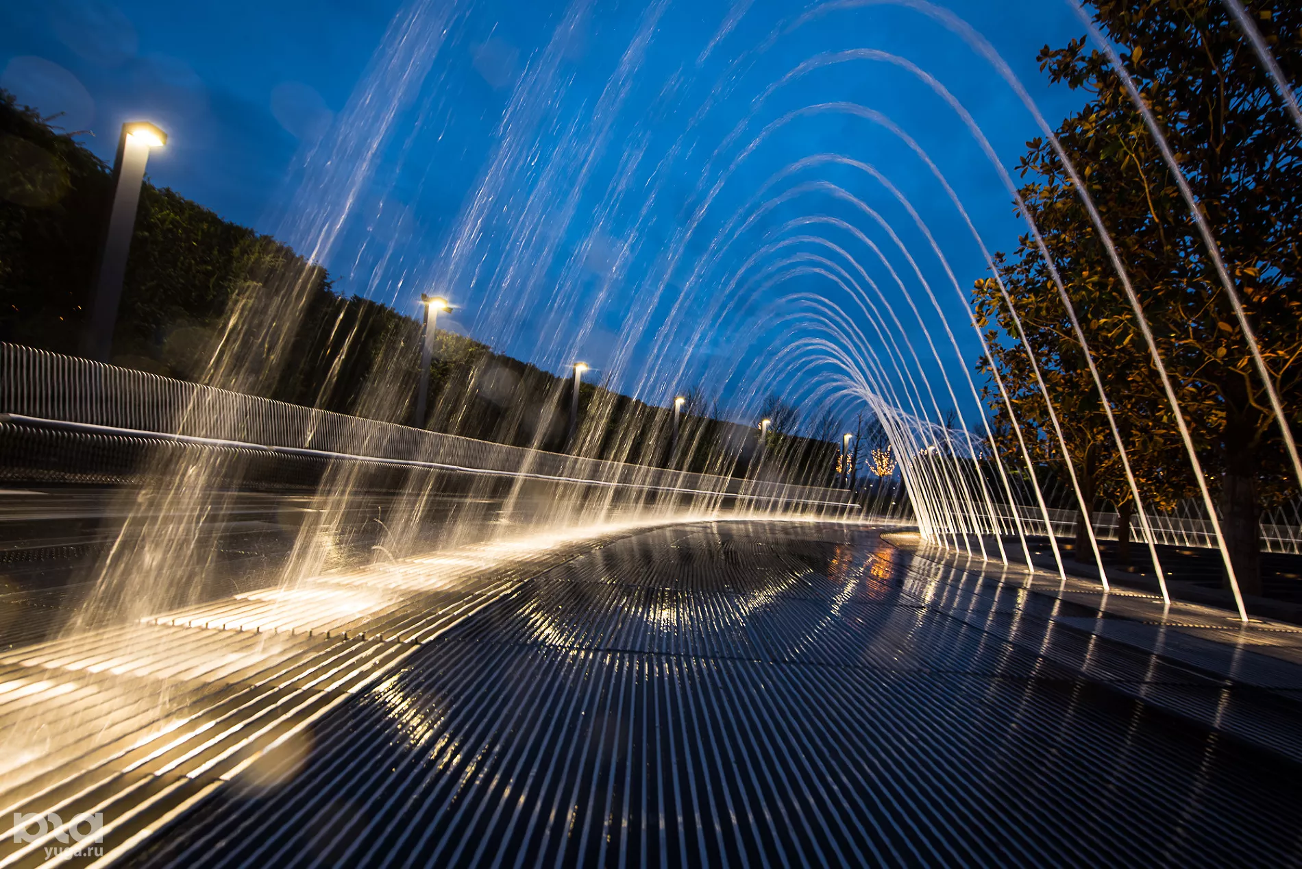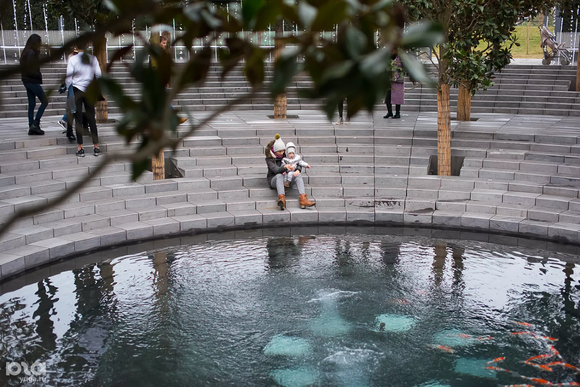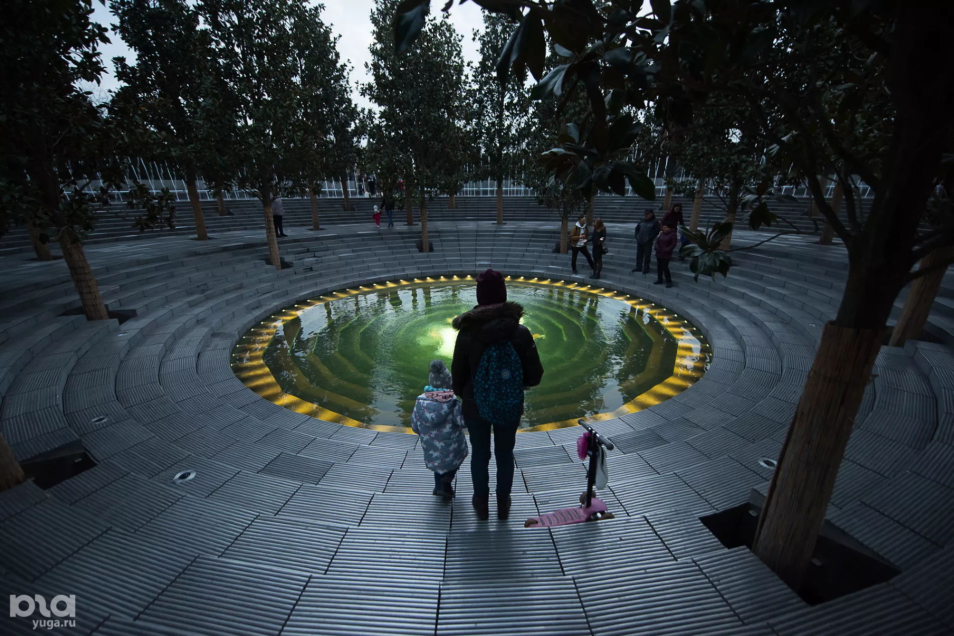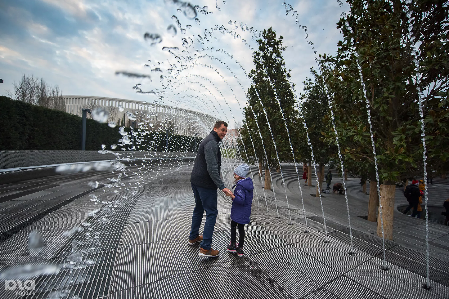 На новой территории высадили пальмы и кипарисы (сейчас часть деревьев закрыта украшенными куполами для обогрева), построили несколько водных объектов: зону с водоемом, в котором плавают декоративные рыбы, несколько фонтанов, под которыми можно гулять, и плоскостной фонтан. В скором времени откроют еще один объект — зеркальный лабиринт. Сейчас он еще обнесен строительной сеткой, а закончить его, по словам строителей, планируется в течение десяти дней.