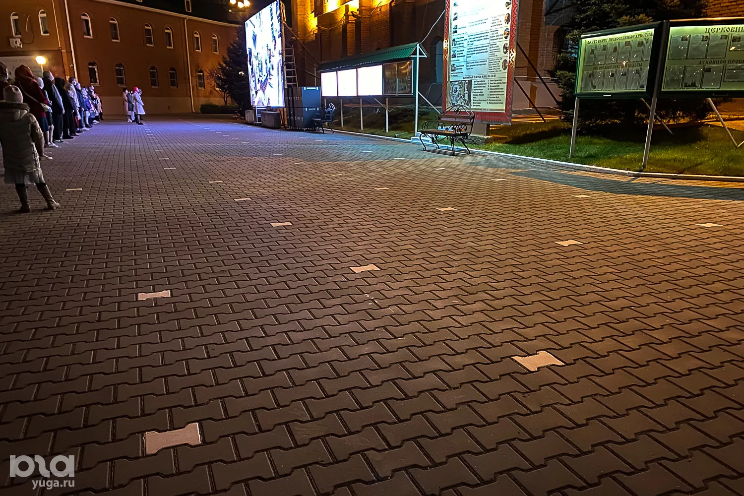 Храмы Екатеринодарской епархии решили провести онлайн-трансляции богослужений, а прихожане могли смотреть службу на экранах, установленных на территории храмов.
