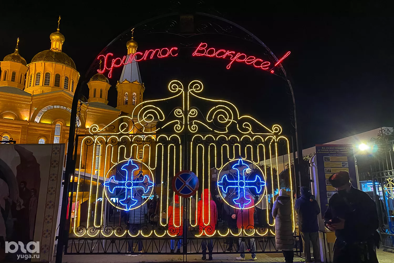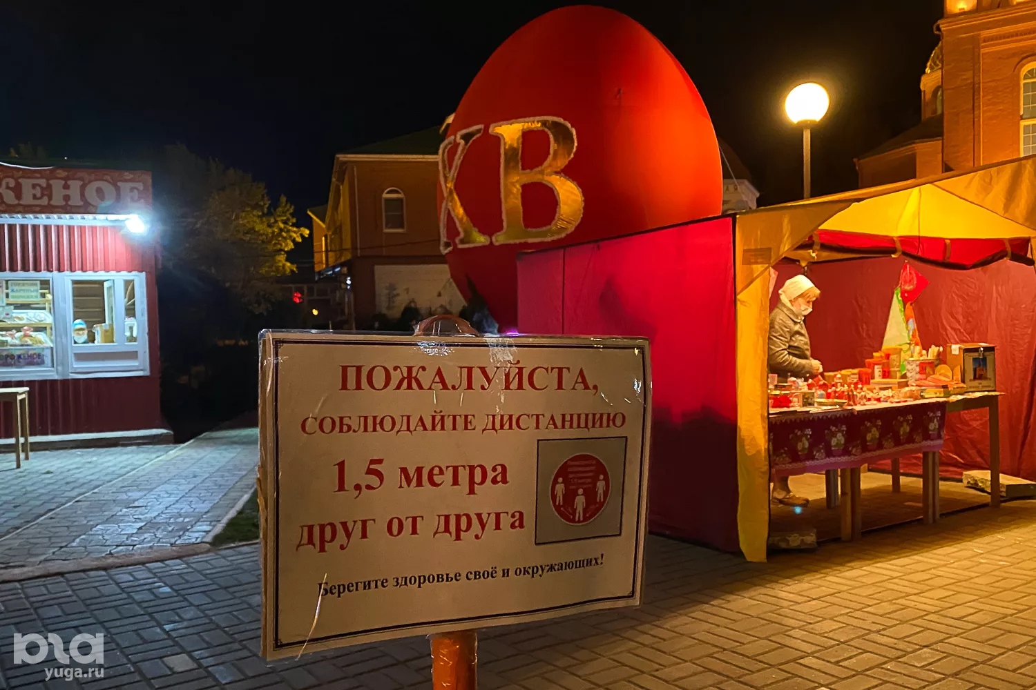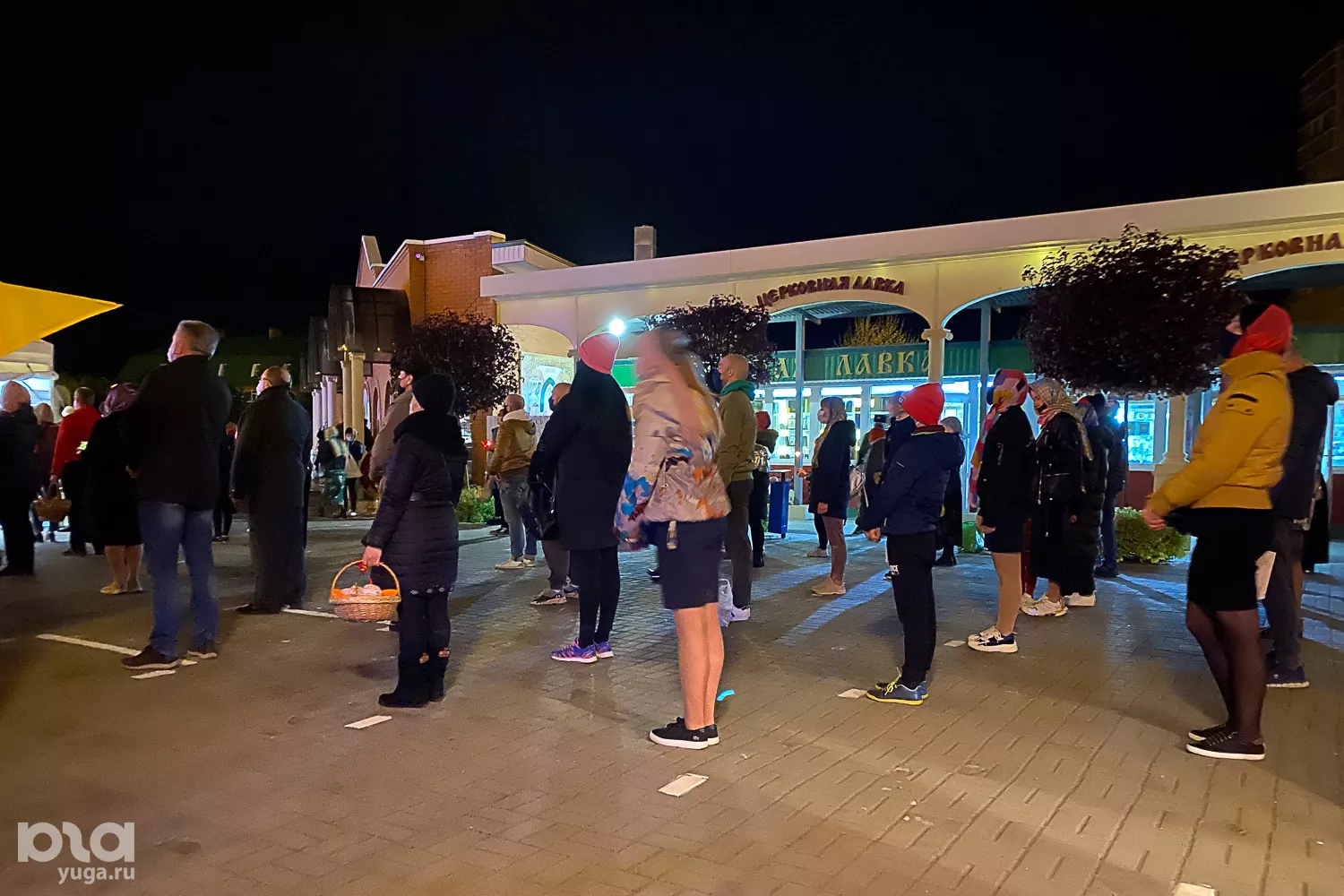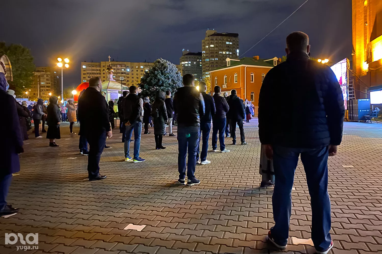 Во дворе возле храма сделали разметку для дистанции в 1,5 метра. На входе в храм для горожан оставили санитайзер и медицинские маски. За порядком следили казаки: они просили людей быть терпимыми и соблюдать все правила, при этом прихожан без масок и с маленькими детьми не пускали, потому что «настоятель не благословит».