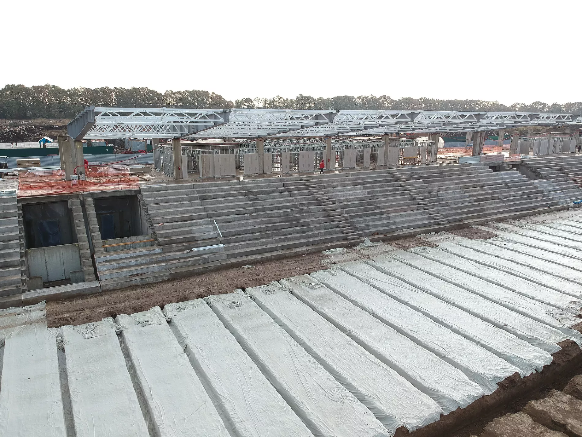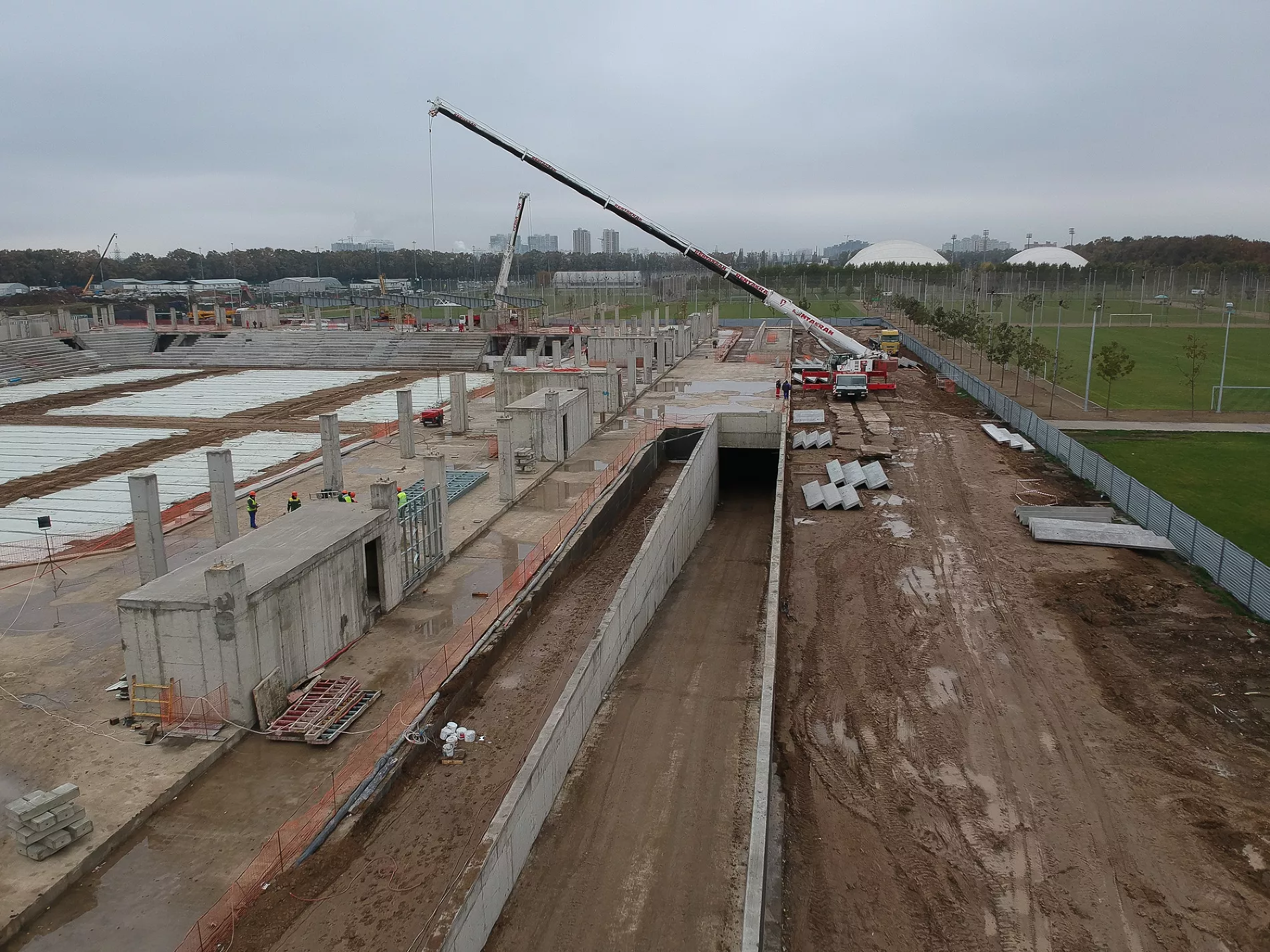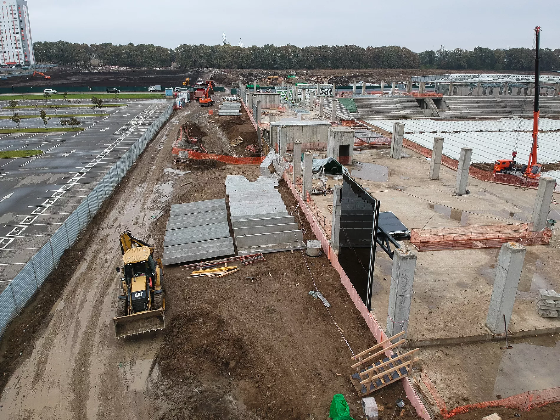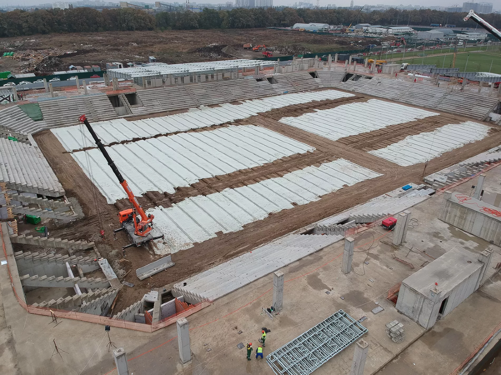 «На прошлой неделе, например, пошел прогресс по крыше. Видим, какая она будет, какой козырек, стало понятно, какой стадион будет по высоте. Уже почти готовы поля у третьего стадиона. Плюс, судя по плану, через дорогу от объекта ведутся работы по строительству еще одной парковки», — рассказал Евгений Таранжин.