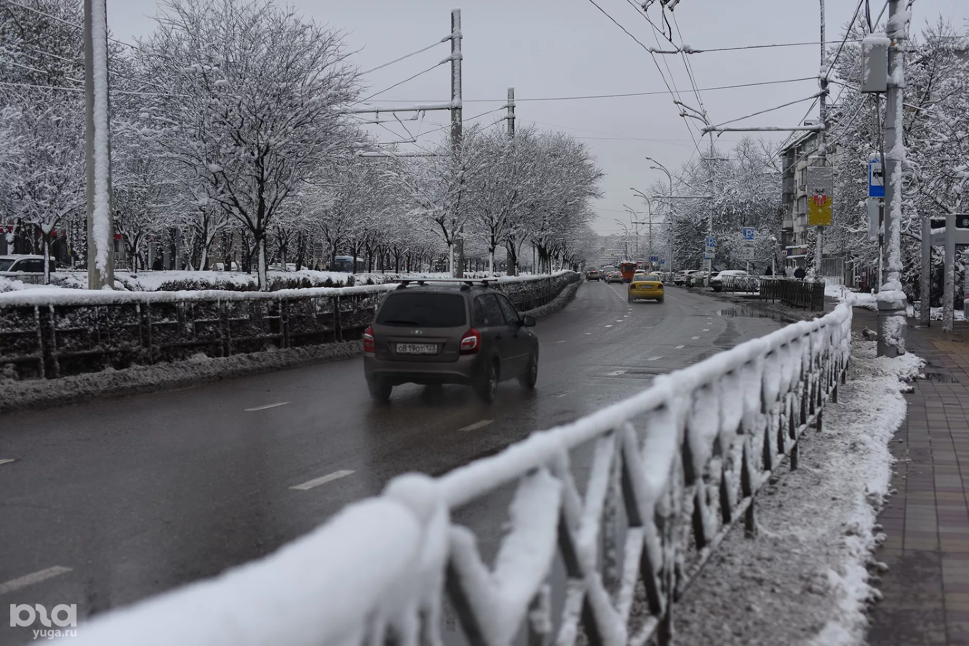 Утром в понедельник из-за погодных условий в городе образовались 5-балльные пробки, из-за чего власти попросили водителей транспортных средств оставить машины дома. Сотрудники Юга.ру подготовили фоторепортаж заснеженного Краснодара, сделав снимки в разных частях города.