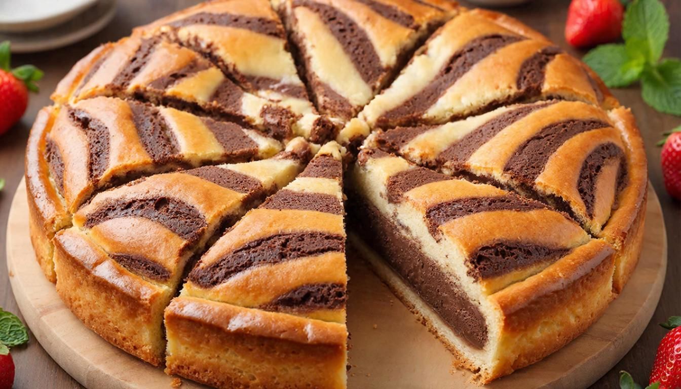 • Простой рисунок «зебра»: Полосы формируются элементарно — путём поочерёдного выкладывания ложек ванильного и шоколадного теста. Не требует выпечки двух отдельных коржей или сложного окрашивания.