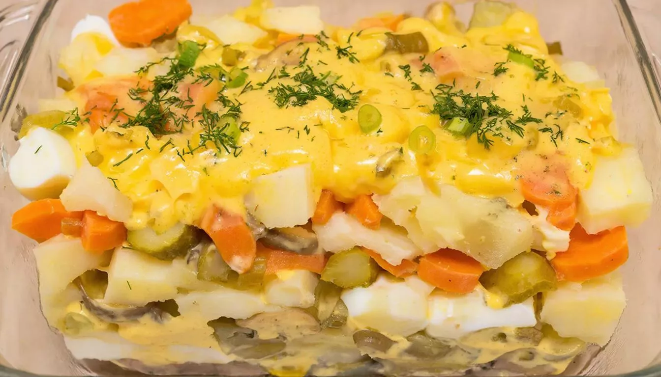 Мужики сметают за минуту: показываю, как приготовить салат-торт «Мона» на 23 февраля