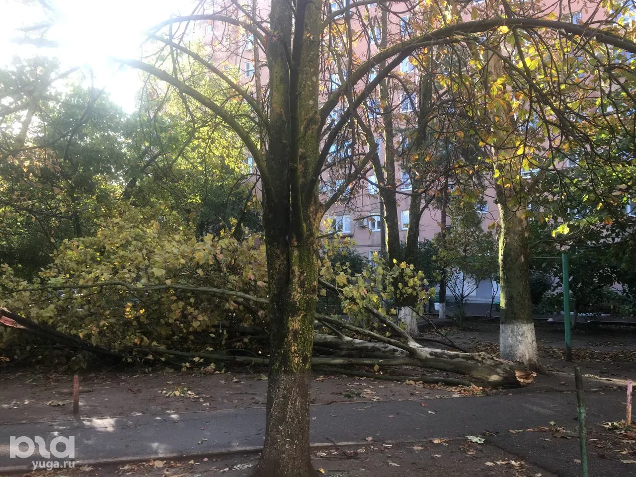 • В Краснодаре ветер повалил деревья © фото очевидца