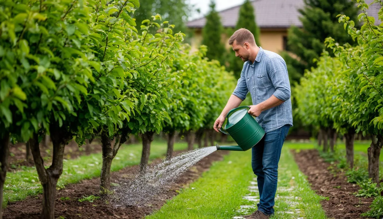 Вместо того чтобы хвататься за лейку, сделайте вот что. Метод проверен на моих яблонях и сливах — работает безотказно.