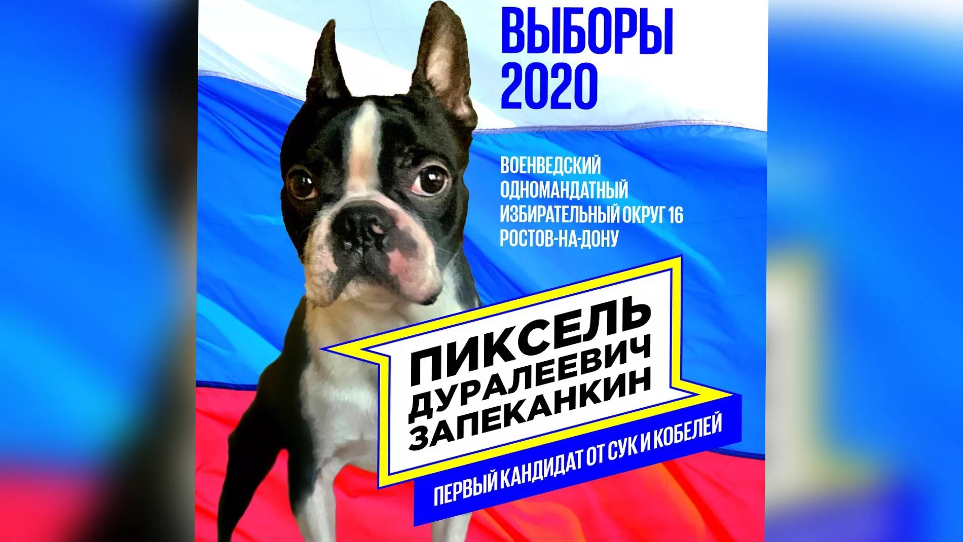 Житель Ростова выдвинул своего пса Пикселя Запеканкина в депутаты городской думы, создал ему программу и сайт.
